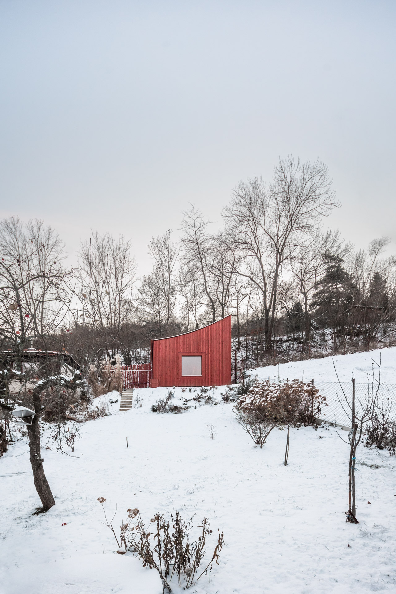 Nízkonákladovost na výsledku ale není vidět, a pokud někde ano, není to na škodu. Realizace má silný koncept, který vedle toho, že je krásný, také omezuje plýtvání a ukazuje, že i s velmi omezenými prostředky se dá pracovat. Faktor stavění svépomocí a materiálová zodpovědnost byl ostatně zásadní také pro jinou realizaci ateliéru BYRÓ architekti, konkrétně rekonstrukci stodoly v Pošumaví, kterou dokázali do značné míry podle projektu architektů zrekonstruovat sami její majitelé.
