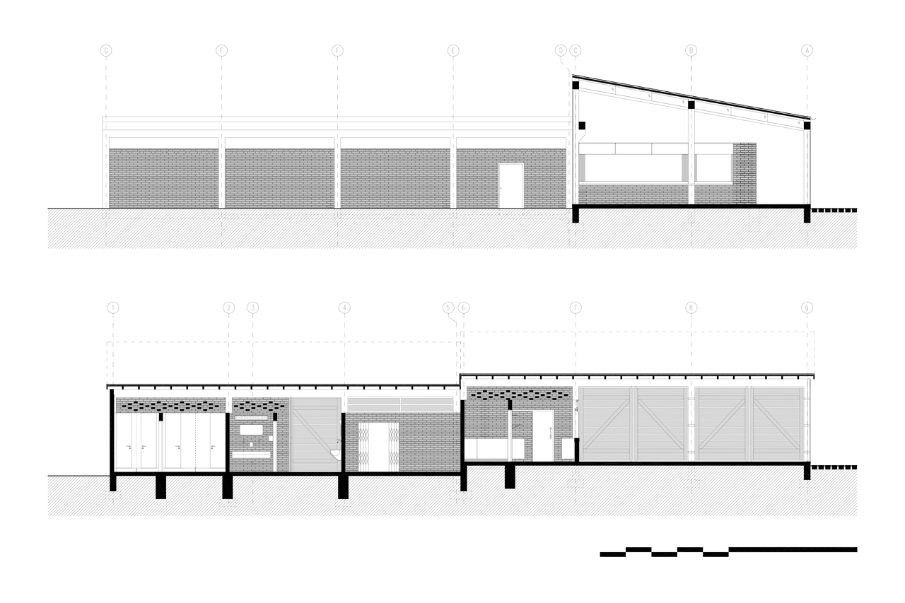 PROKŠ PŘIKRYL ARCHITEKTI, Zázemí biotopu v Honěticích u Kroměříže, řezy – foto