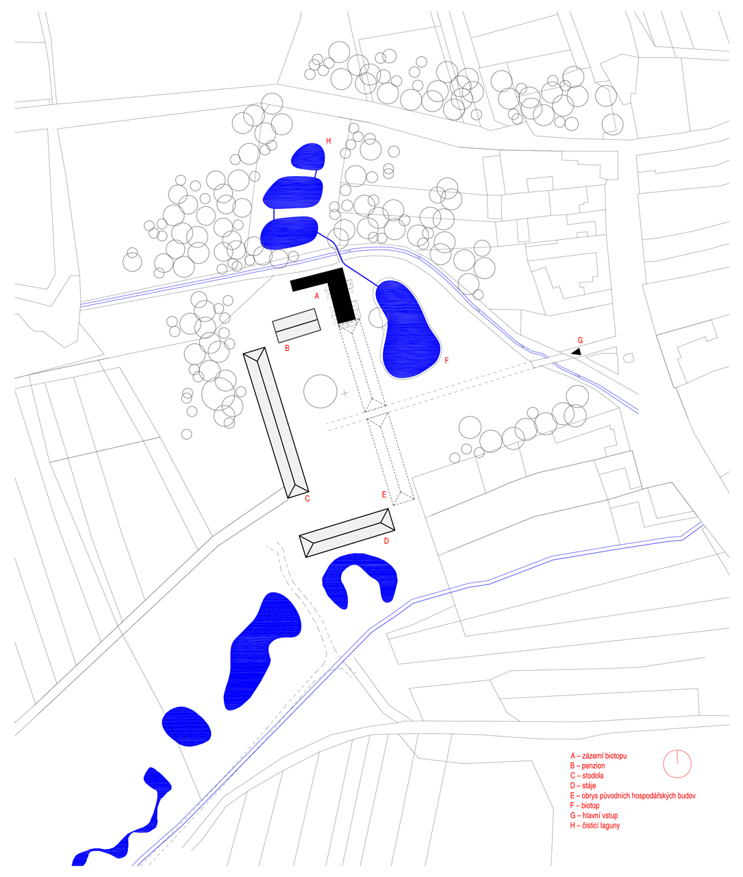 PROKŠ PŘIKRYL ARCHITEKTI, Zázemí biotopu v Honěticích u Kroměříže, situace (1842) – foto