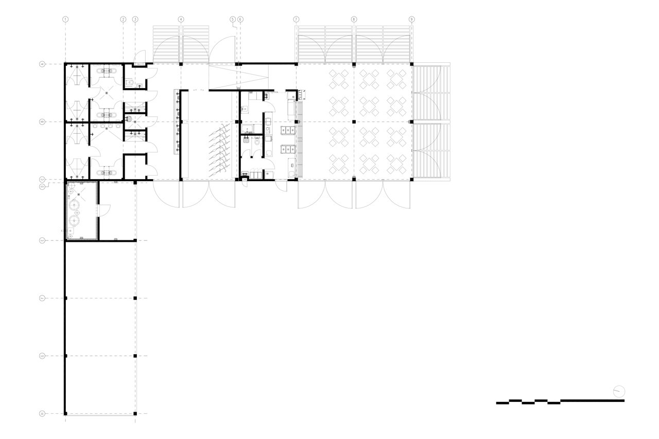 PROKŠ PŘIKRYL ARCHITEKTI, Zázemí biotopu v Honěticích u Kroměříže, půdorys 1. NP – foto