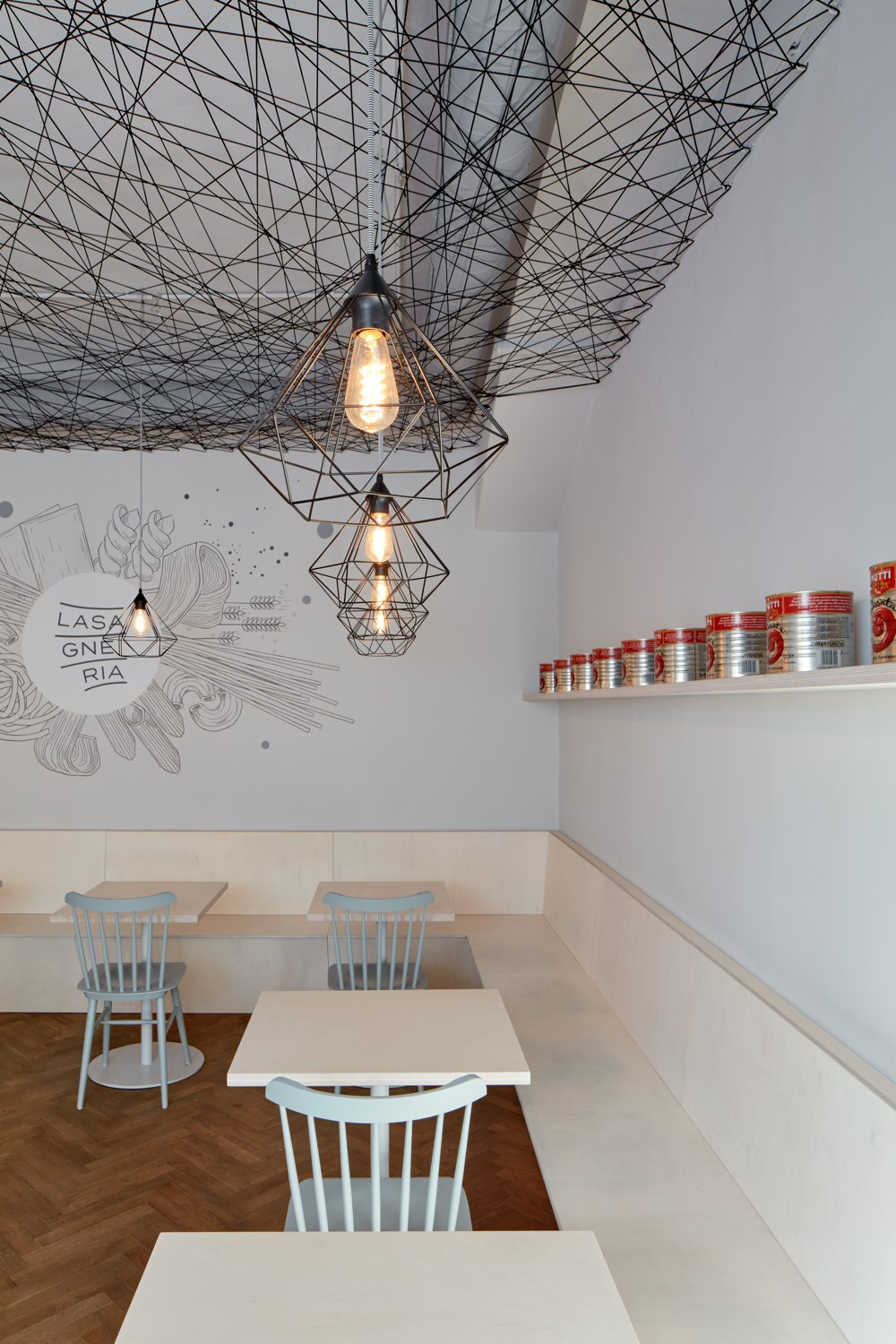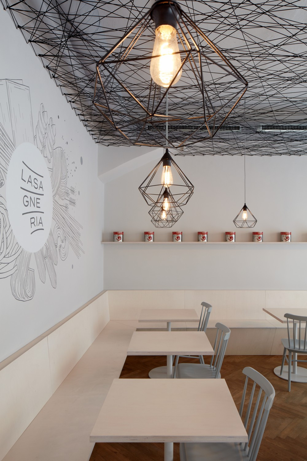 Korunní ulice v Praze je známa mnoha vyhlášenými gastronomickými podniky, ke kterým se nově přidala také Lasagneria – bistro zaměřující se na italské lasagne. Mar.s architects vytvořili z bývalé prodejny potravin prosvětlený prostor s originálně řešeným podhledem, jehož černá barva kontrastuje se světlým interiérem. Lasagnerie není prvním gastro podnikem, které Mar.s architects v Praze navrhli. Vedle nového vinohradského projektu stojí například za interiérem karlínského Nejen Bistra či nedávno otevřeným bistrem Pipca na Letné.