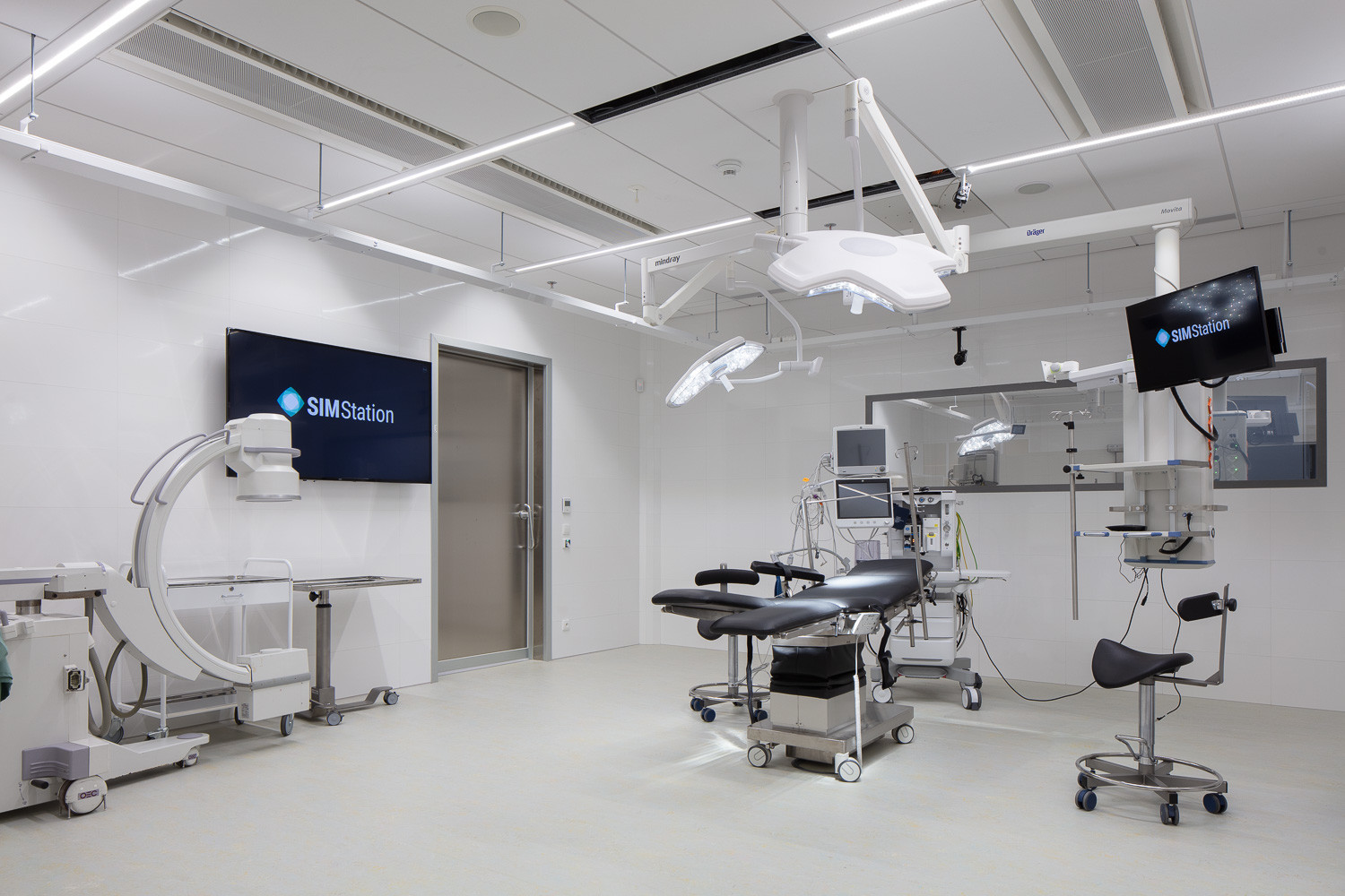 Interiéry pětipodlažní budovy v sobě kombinují simulační prostředí nemocnice s prostory určenými pro vzdělávání, jako jsou seminární místnosti a přednáškové sály. Architekti proto volili takové materiály, které by vyhovovaly oběma prostředím současně, ty musely být především odolné, snadno čistitelné a funkční. Pro podlahy byla zvolena krytina Marmoleum, která našla uplatnění i v ostatních budovách kampusu. Tato přírodní podlaha vytváří zdravé vnitřní prostředí, snadno se čistí, čímž zaručuje vysokou úroveň hygieničnosti, a navíc ji lze renovovat. Marmoleum je také díky obsahu lněného oleje přirozeně antibakteriální, a proto skvěle funguje i v reálných provozech nemocnic.
