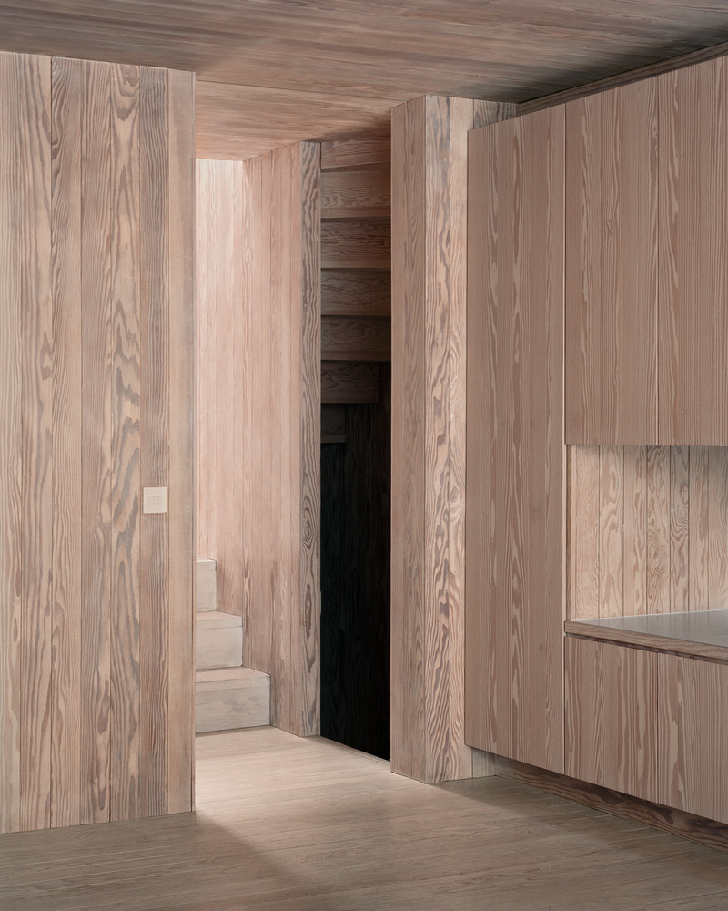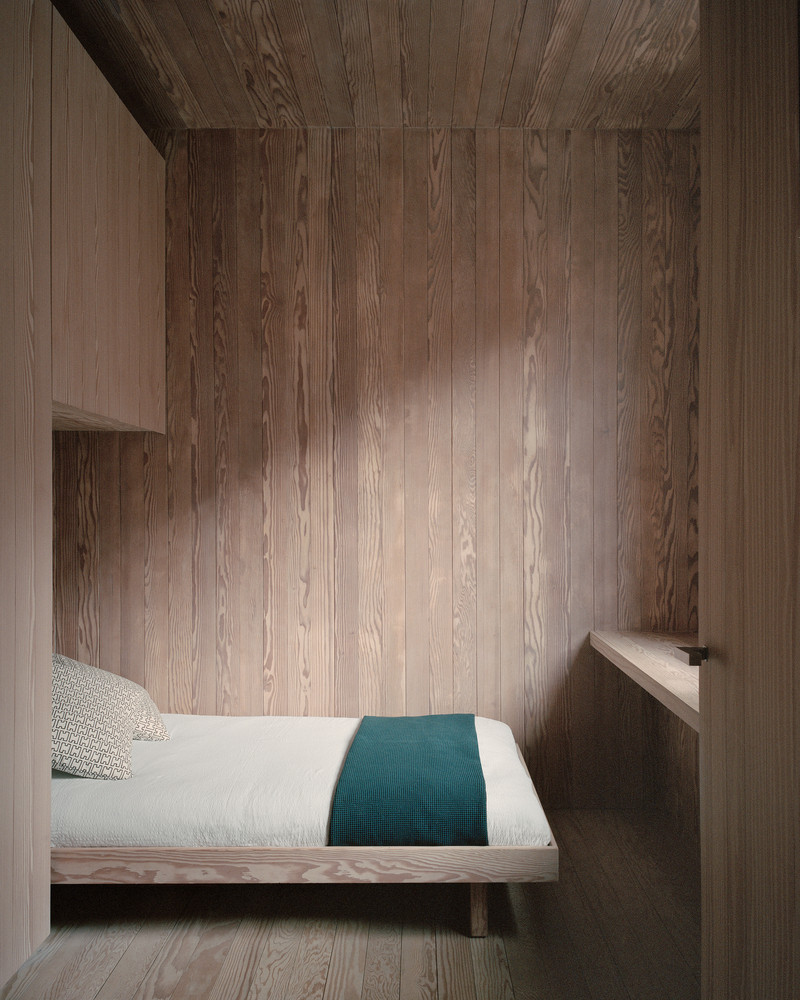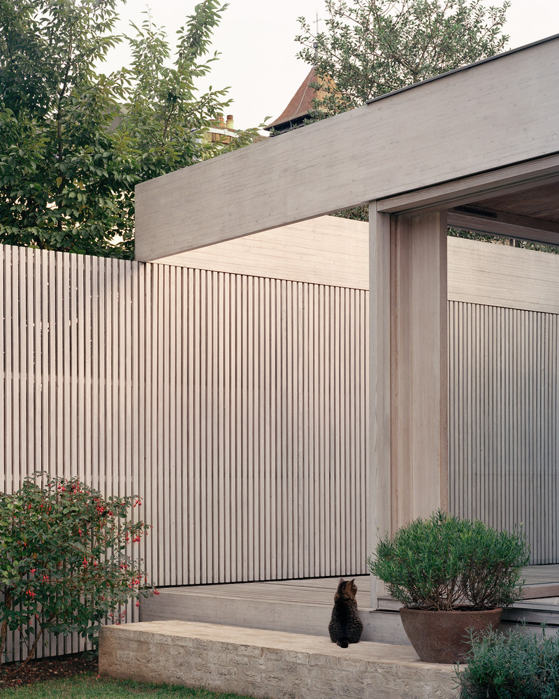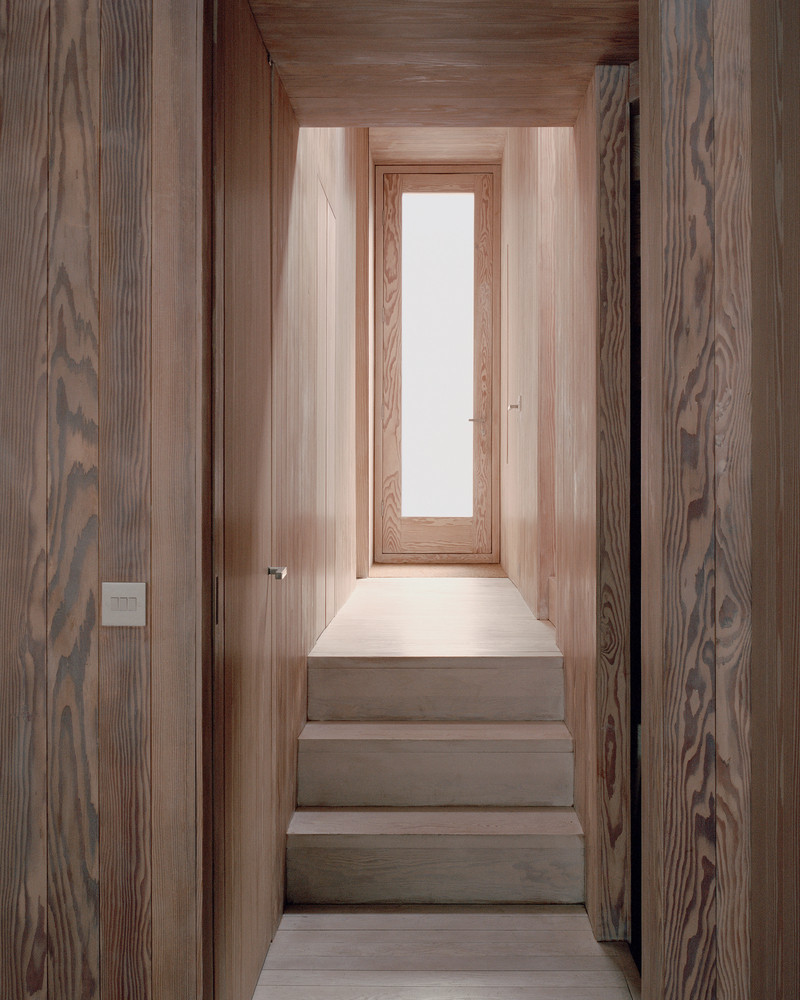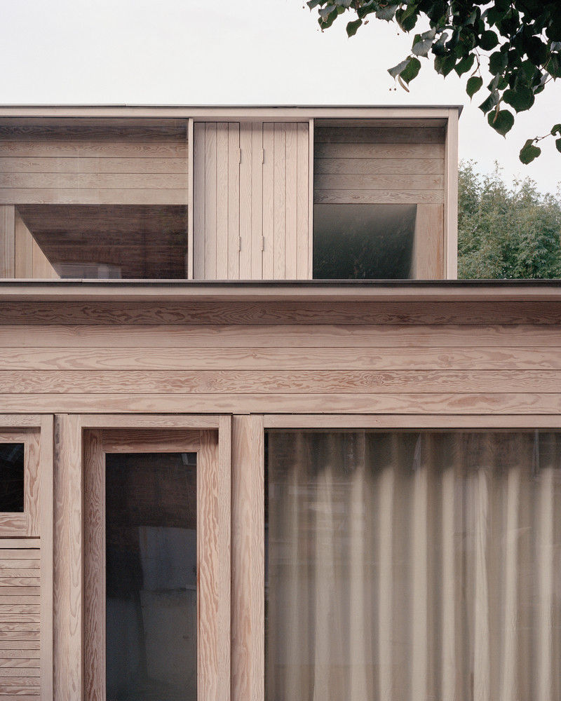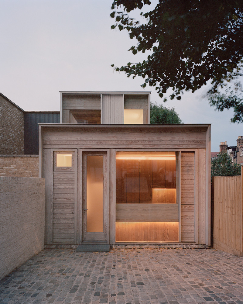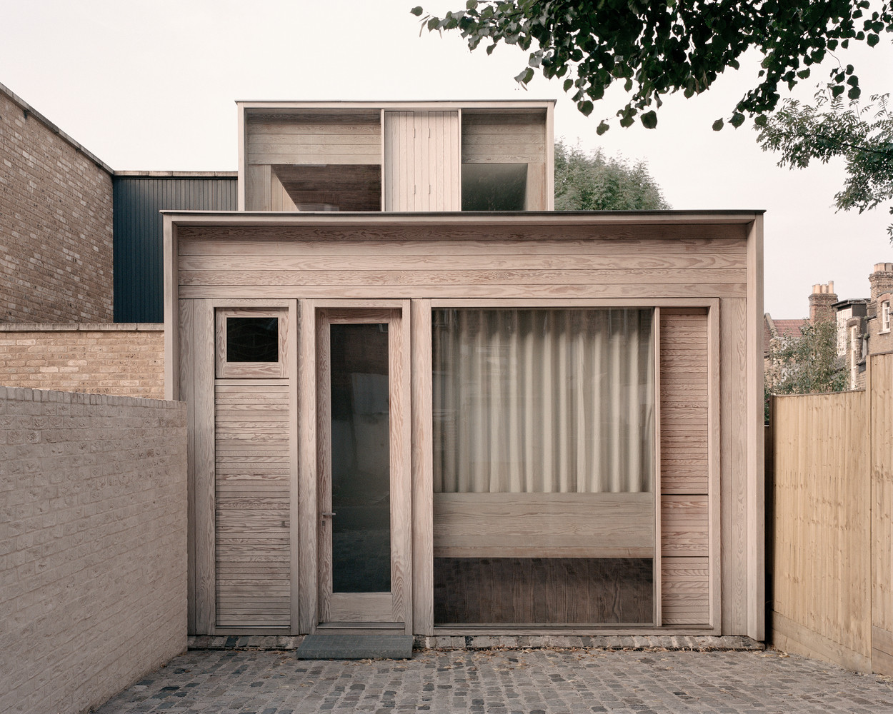 Dům obložený dřevem zvenčí i zevnitř vstoupil do historické rezidenční čtvrti Londýna. Jeho šířku určila stará garáž, která na pozemku dříve stávala.