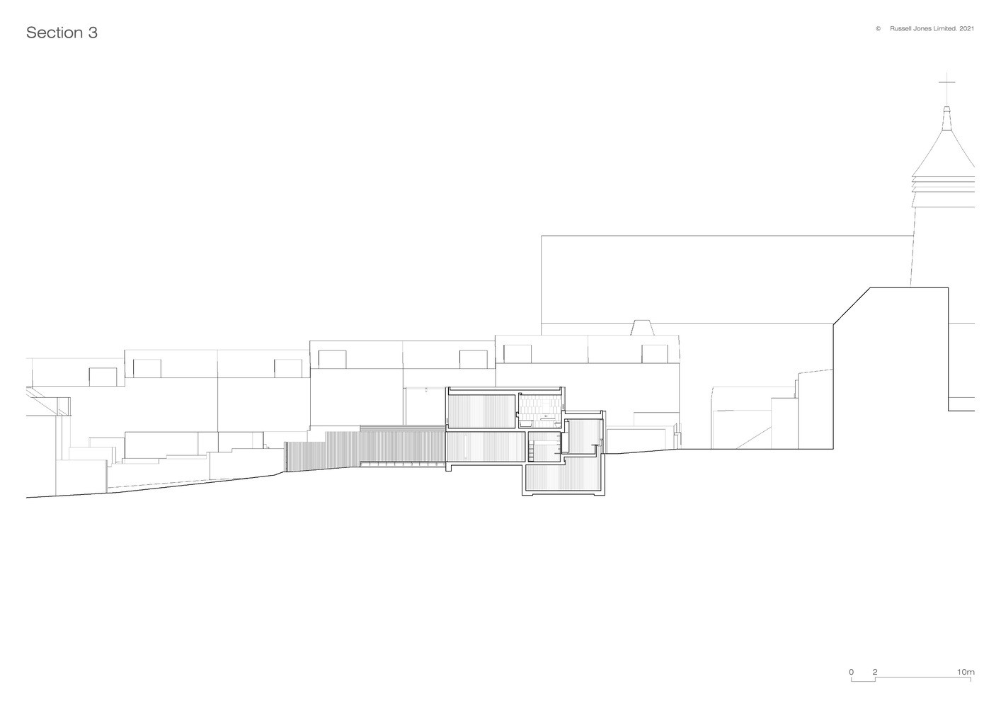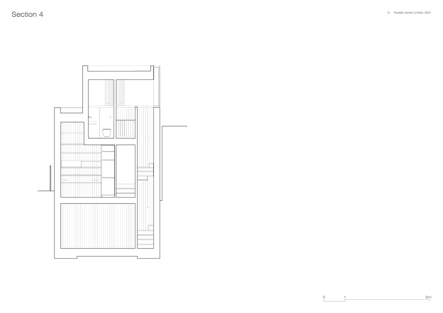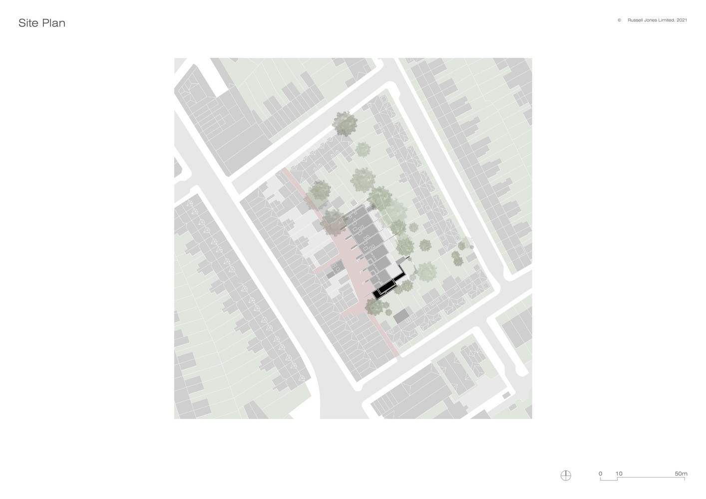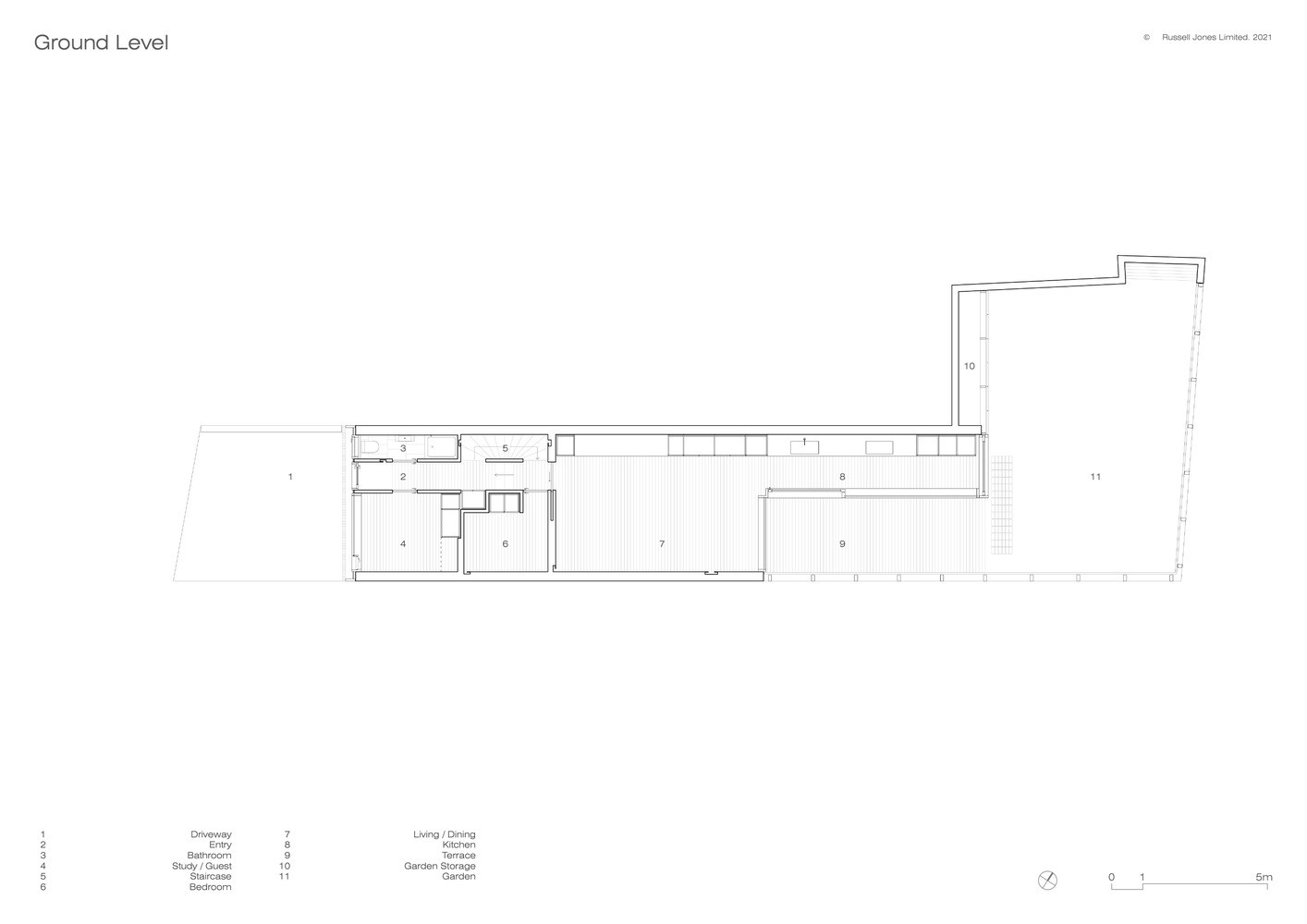 „Na pozemku o rozloze 200 metrů čtverečních, který je přístupný úzkým průchodem, se dříve nacházela stará garáž a zadní zahrada přilehlého domu,“ vysvětluje Russell Jones. Byl to právě úzký průchod, který zásadně ovlivnil výběr materiálů a stavebních metod. „Vše muselo mít takové rozměry a hmotnost, aby se dalo ručně přenést nebo dovézt na vozíku,“ dodává.