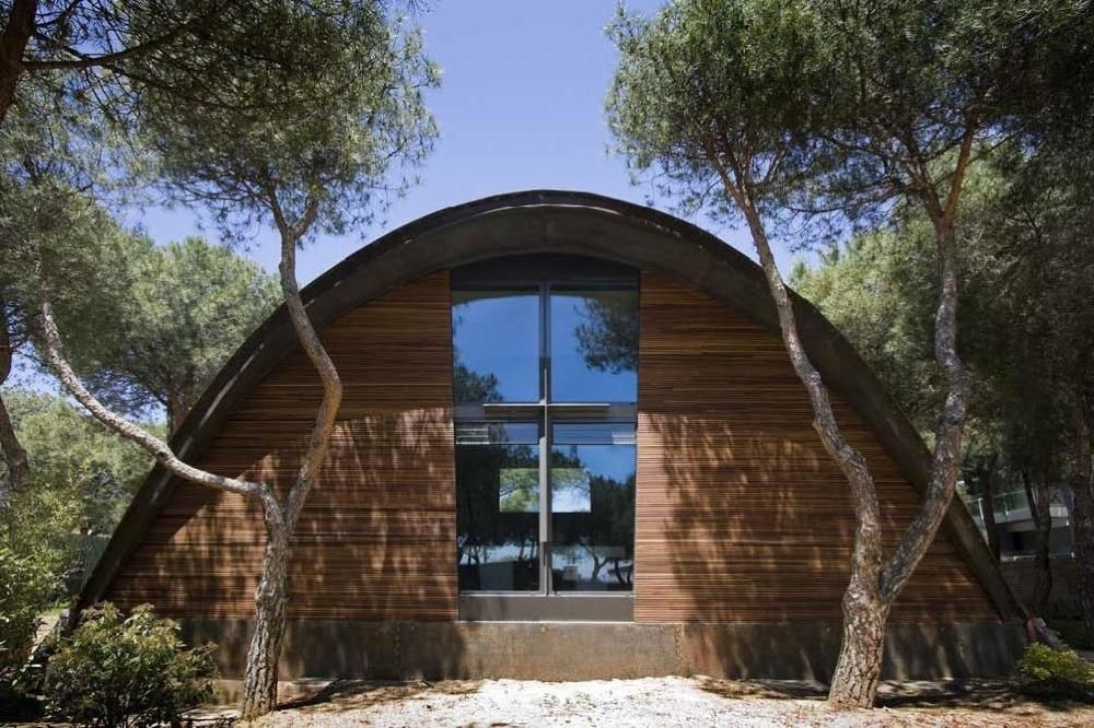 - Lehkost. Samonosná betonová střecha bez sekundární struktury vyžadovala minimální hmotnost materiálu.