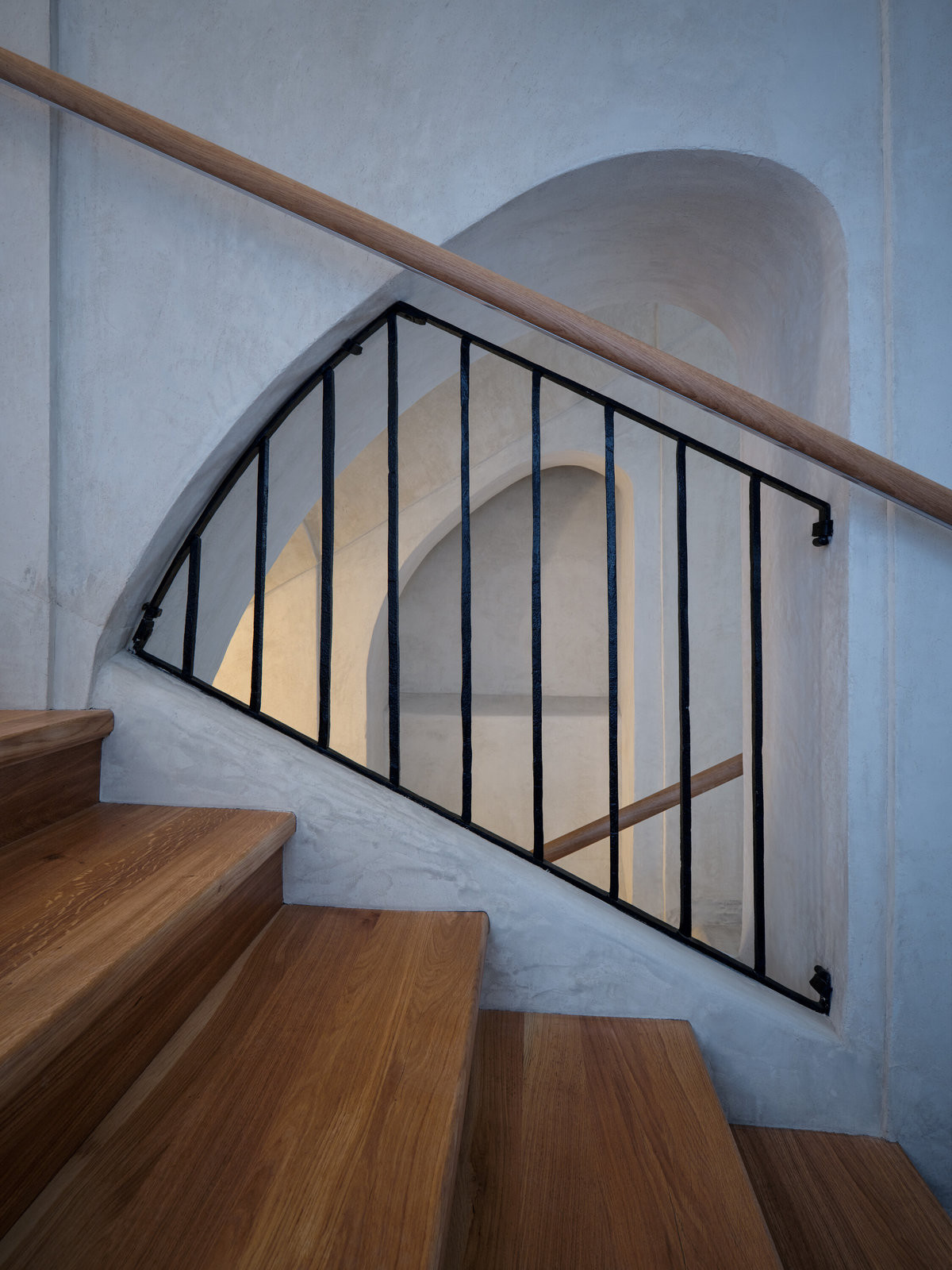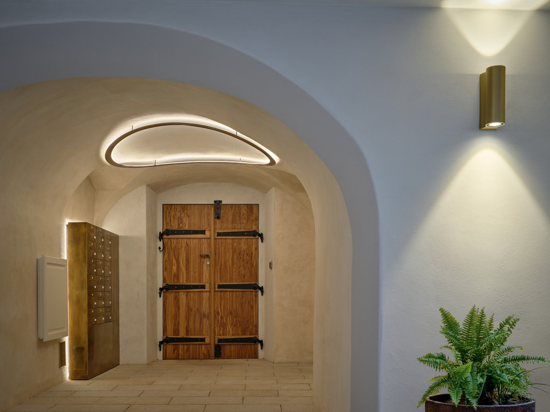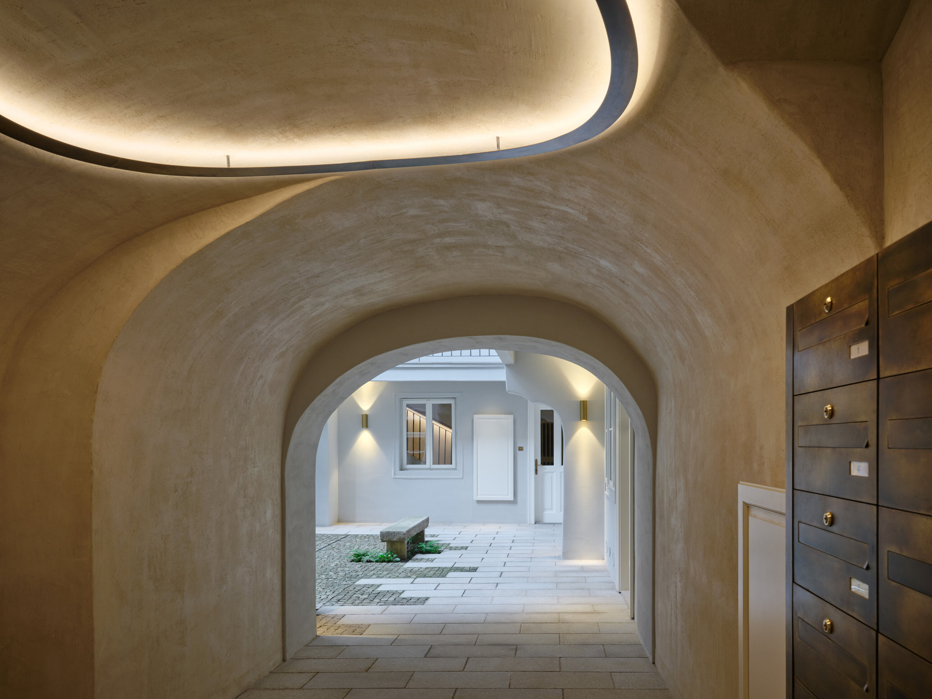Zvláštní pozornost architekti věnovali i schodišti, které se stalo nositelem astrální a alchymistické atmosféry projektu VII. Dům - název hravě spojuje číslo popisné a astrologický význam Sedmého domu jako domu partnerství. Osvětlení připomíná vesmírná tělesa, světelné linie evokují dráhy meteorů a poštovní schránky z patinované mosazi dotvářejí obraz místa, kde se historie potkává s fantazií.