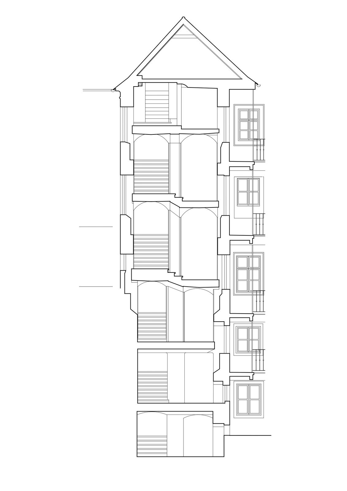 Při návrhu dispozic bylo třeba sladit požadavky památkové péče, klienta i realitního trhu – to se podařilo, jelikož byty jsou dnes téměř všechny prodané. Výsledkem se staly tři byty na typovém podlaží, které nabízejí rozmanité varianty od menších jednotek po byty zabírající celé patro. Každý z nich však staví do popředí kouzlo původních konstrukcí, které architekti citlivě doplnili novými prvky.