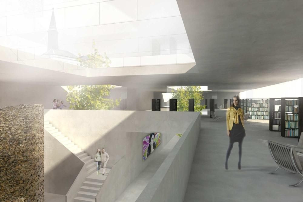 Místo nových impulzů a nápadů, místo dialogu, setkávání a kulturních akcí. Budova otevřená a živoucí. Stejnou měrou místo intimity a ticha, místem komorní atmosféry dřívějších knihoven klášterních či zámeckých. Plynulé prostory veřejného výběru i uzavřená zákoutí. Prostory otevřené svému okolí i vnitřní klidová atria. Knihovna uzavřená do sebe a otevřená venku, stejně tak otevřená do sebe a uzavřená venku.