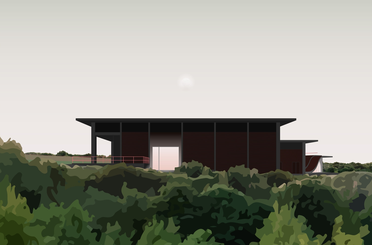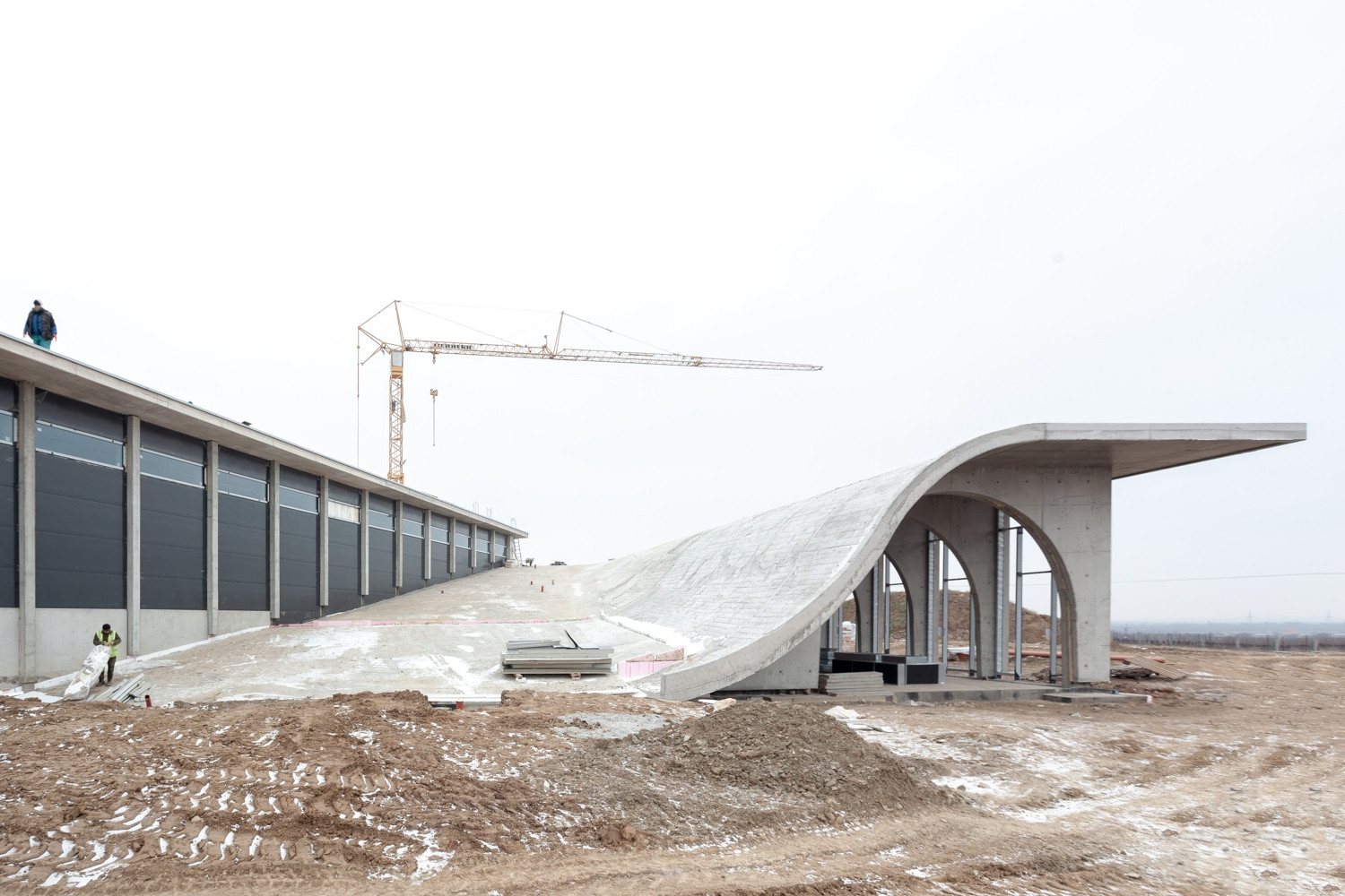 Nižší, avšak pohledově nejexponovanější bude návštěvnická a administrativní část s velkoryse prosklenou fasádou orientovanou směrem na jih. Na ni navážou dvě výrobní haly s rozdílnou světlou výškou, která odpovídá výrobním procesům, jež se budou odehrávat uvnitř. Vzájemným natočením a průnikem jednotlivých hmot vzniknou dva funkčně i opticky oddělené dvory: na jedné straně provozní dvůr, kde se soustřeďují výrobní a logistické procesy, na druhé straně pobytový prostor pro návštěvníky, který ve formě měkce tvarovaného amfiteátru stoupá až na střechu budovy a nabízí dálkové výhledy do krajiny. Všechny části budou sjednoceny výrazným přesahem střech a dřevěným obkladem fasády.