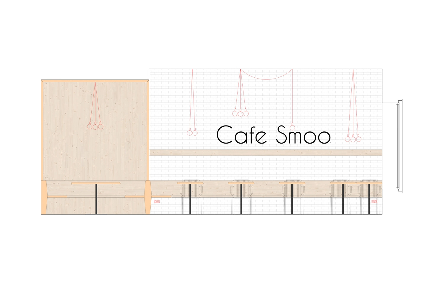 Interiér Cafe Smoo v Příbrami, půdorys, Michael Karnet