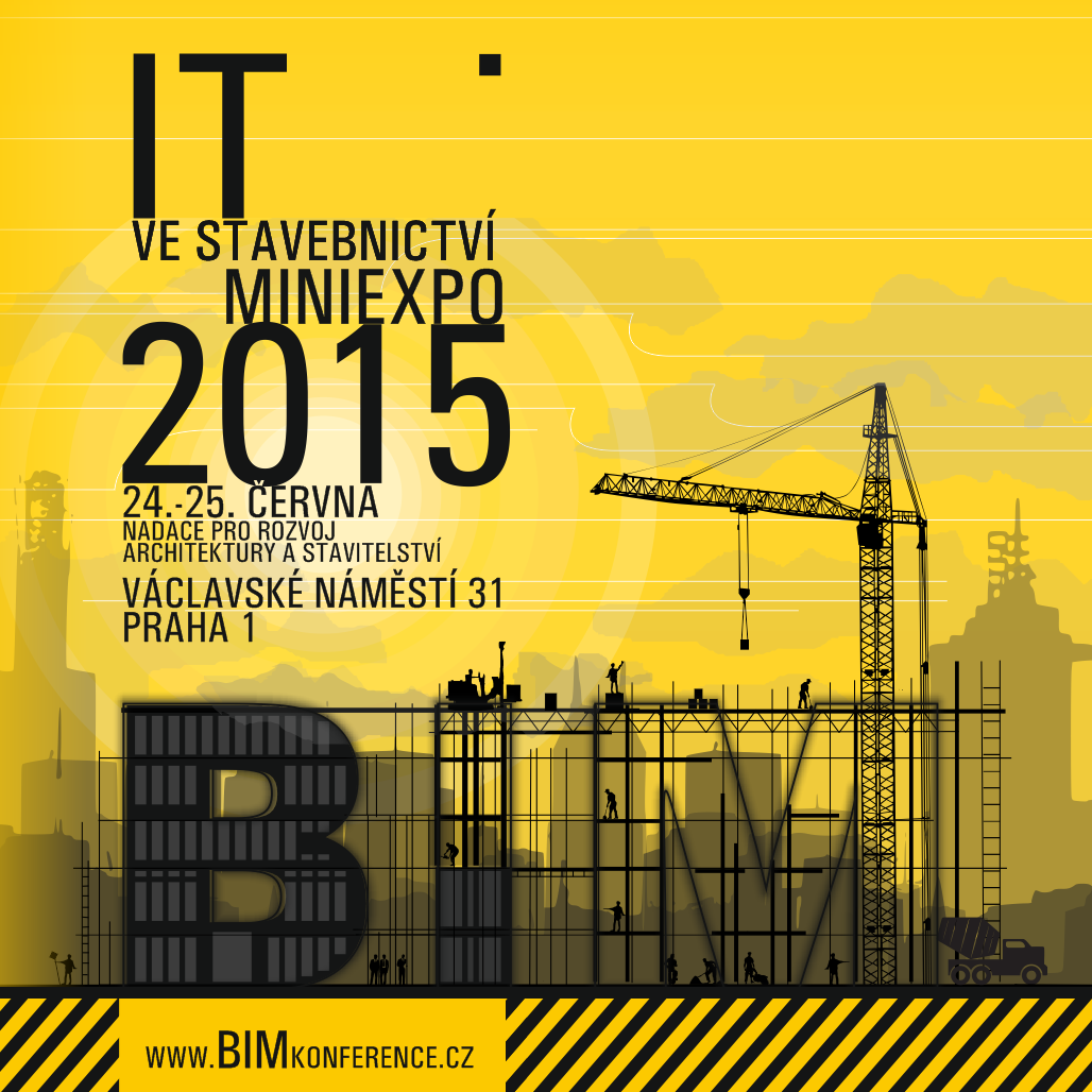 Odborná rada pro BIM ve spolupráci s Nadací pro rozvoj architektury a stavitelství srdečně zvou všechny odborníky ve stavebnictví na miniexpo nazvané IT ve stavebnictví , která se uskuteční ve dnech 24. a 25. června 2015 v sídle nadace ABF na Václavském náměstí.