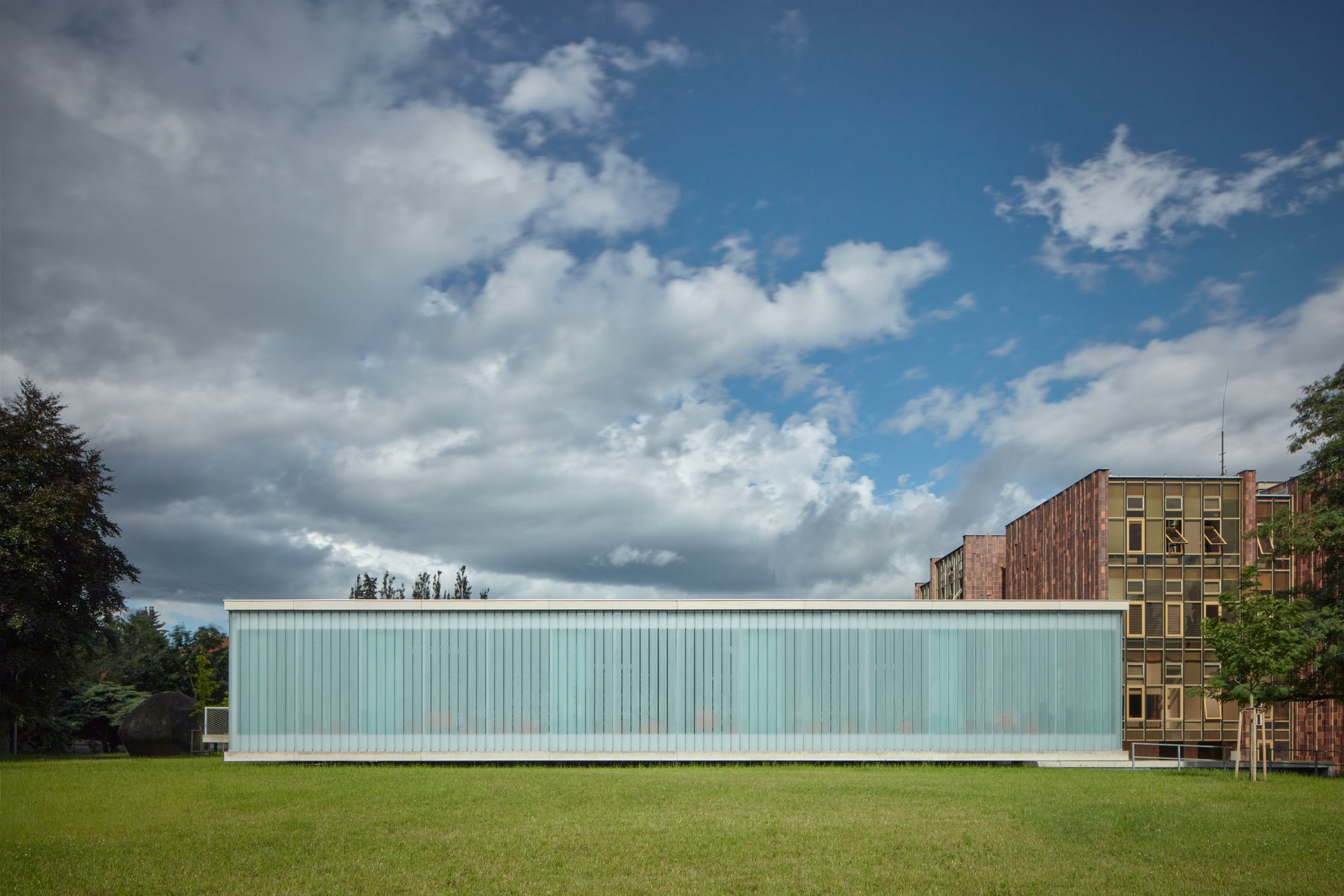 Minulý rok dokončili čerství laureáti ceny Architekt roku 2022 minimalistickou přístavbu Jihočeské vědecké knihovny v Českých Budějovicích. Jednopodlažní budovu se zelenou střechou lemují po celém obvodu skleněné lamely.