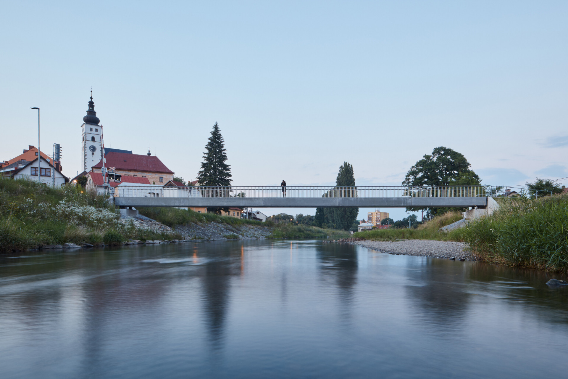 Minimalistická lávka z UHPFRC betonu v Příboře je první realizací svého druhu u nás