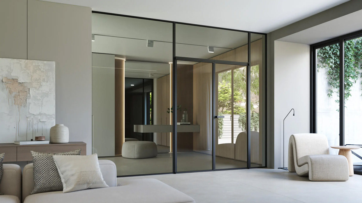 Progresivnější přístup přináší model IDEALINE, který pracuje s členěním skleněné plochy pomocí jemných hliníkových profilů. Toto sofistikované rozdělení vytváří dynamiku a umožňuje architektům a designérům hrát si s vizuálním rytmem interiéru. V nabídce je deset základních variant členění, které lze na přání individuálně modifikovat, což poskytuje široké možnosti přizpůsobení konkrétním projektům. I u tohoto modelu lze pracovat s variantou WOOD, kdy je hliníkový rám obalený dýhou.