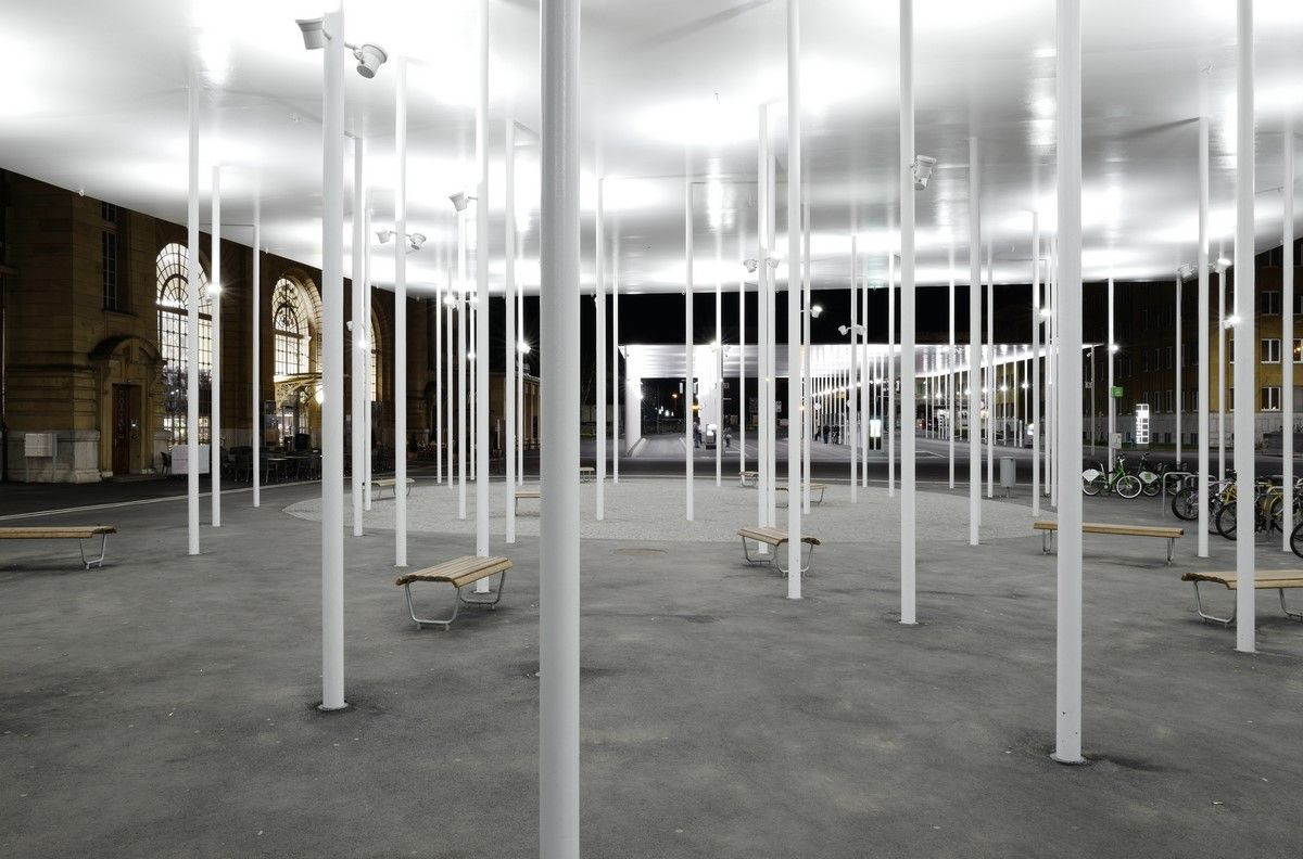 Minimalistická a racionální realizace švýcarské architektonické kanceláře Frundgallina boří představy o špinavých, uspěchaných a depresivních nádražích. Jednoduše a přehledně řešený systém poskytuje ochranu před nepříznivými vlivy počasí a nabízí klidný a příjemný prostor k setrvání v rušném místě.