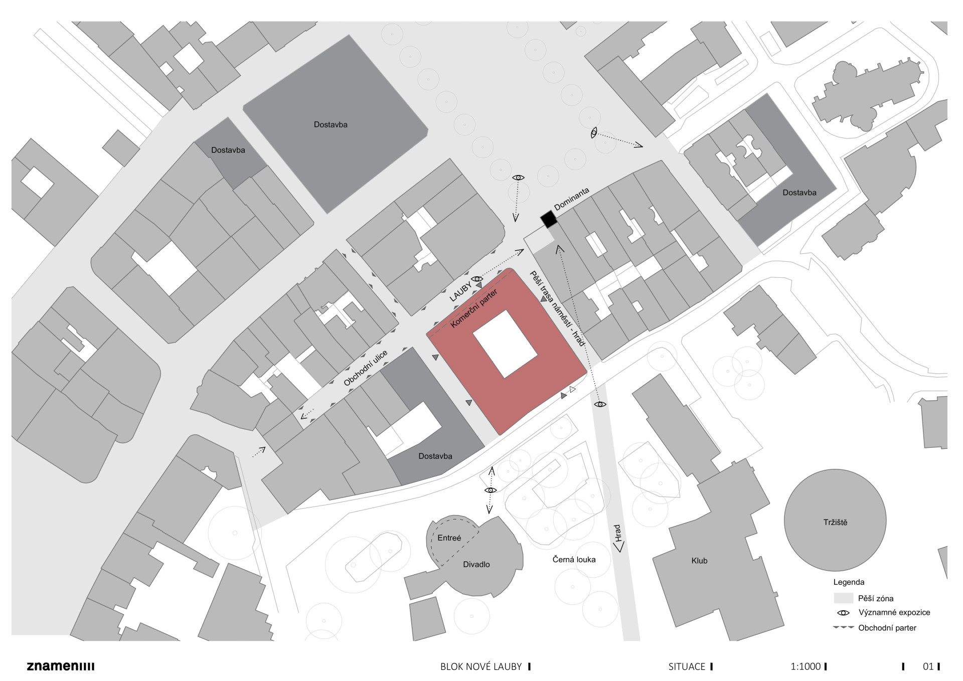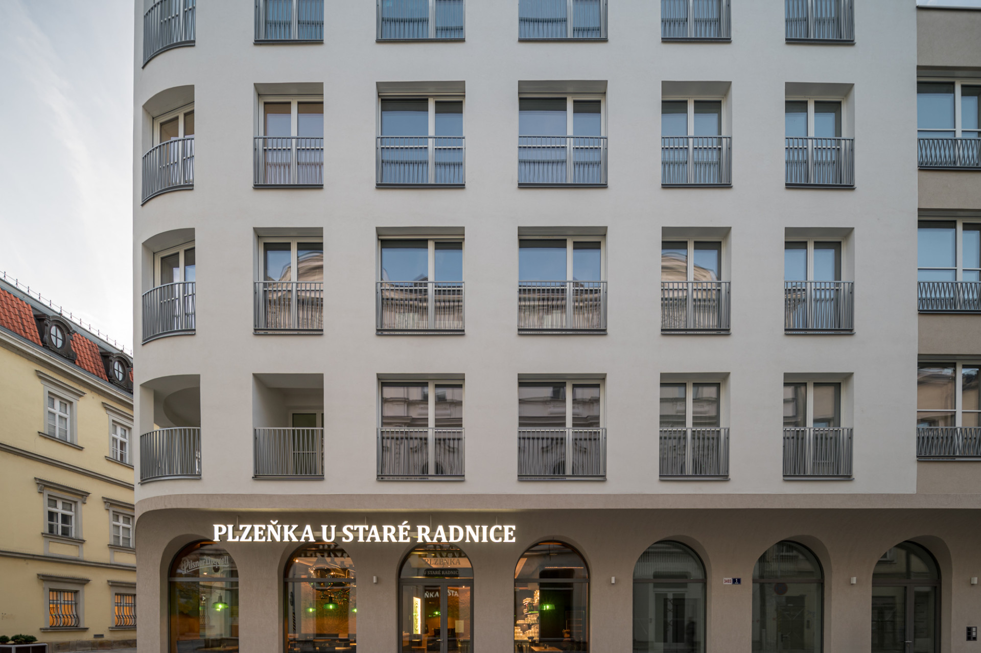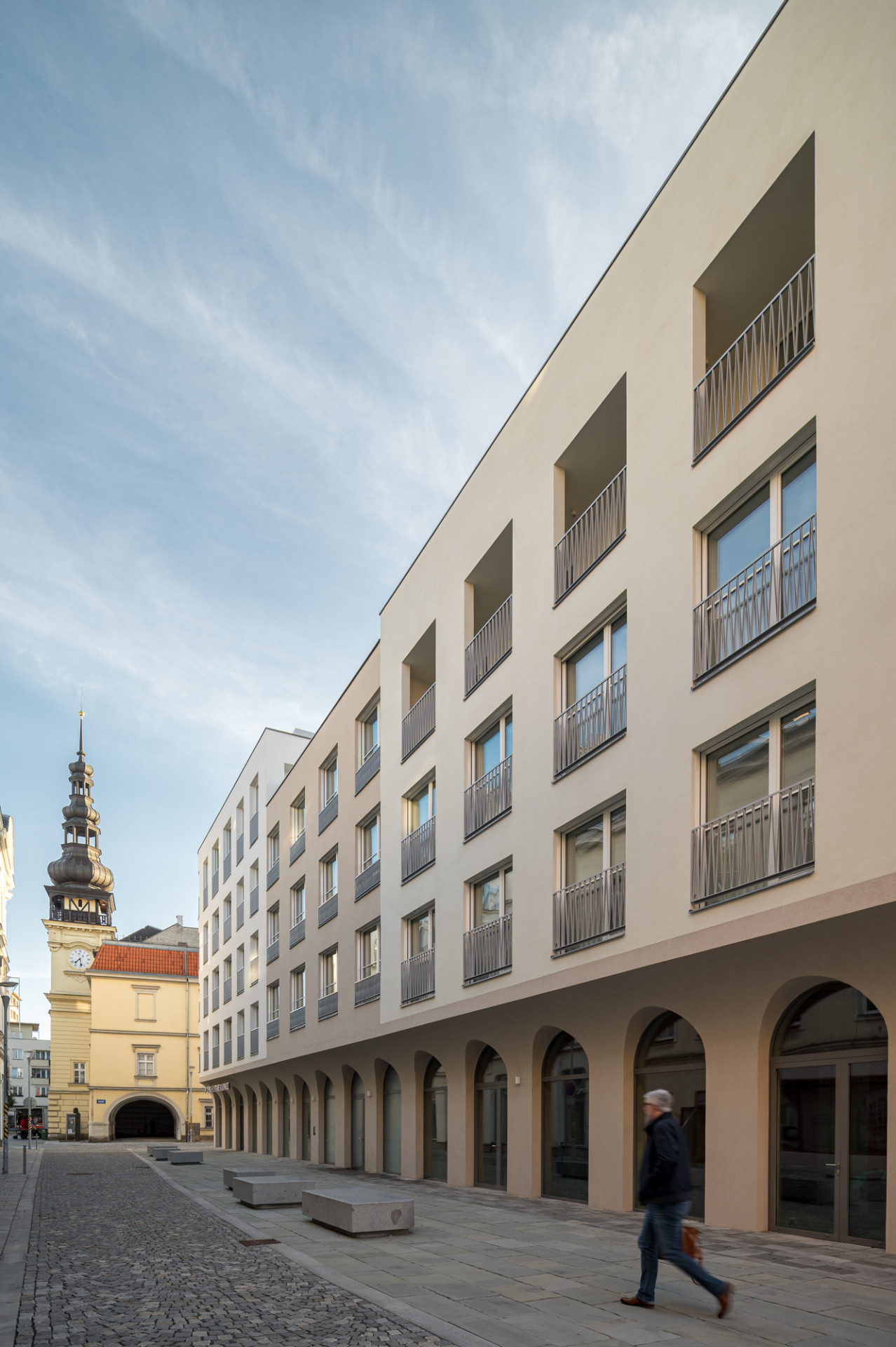 „Důležité bylo nalezení správného hmotového řešení a odpovídajícího architektonického výrazu, neboť dostavba bloku není založena na cizorodých a kontrastních principech – naopak je kontextuální,“ říká architekt Richard Sidej z ateliéru znamení čtyř – architekti. Že je v proluce potřeba postavit celý nový blok domů, jasně vyšlo ze struktury centra Ostravy, které právě jednotlivé bloky formují. Sestaveny jsou vždy z několika různě velkých a vysokých domů, jak je to pro postupně rostoucí historická města typické. I nový blok je proto rozdělen do několika hmot.