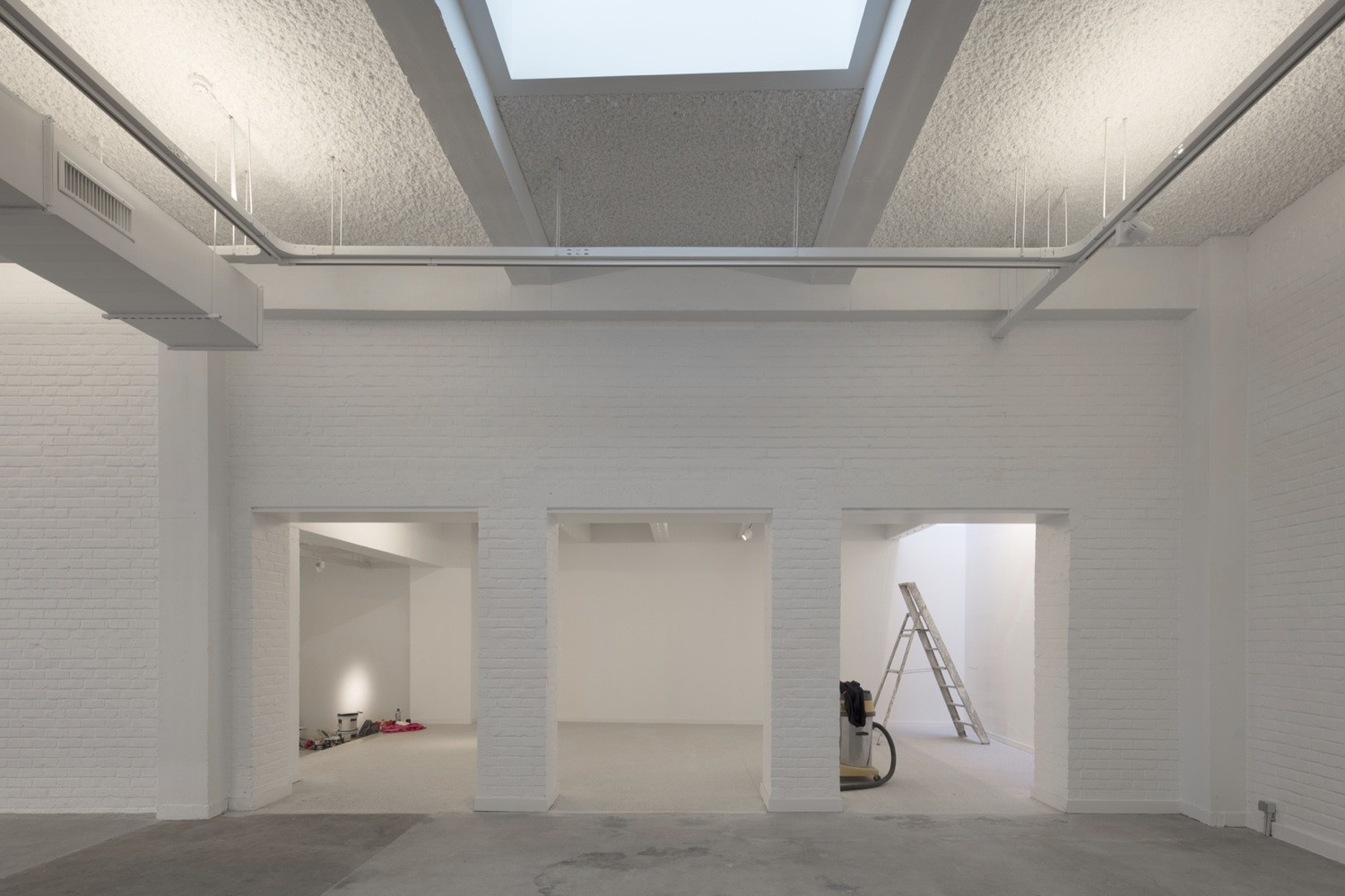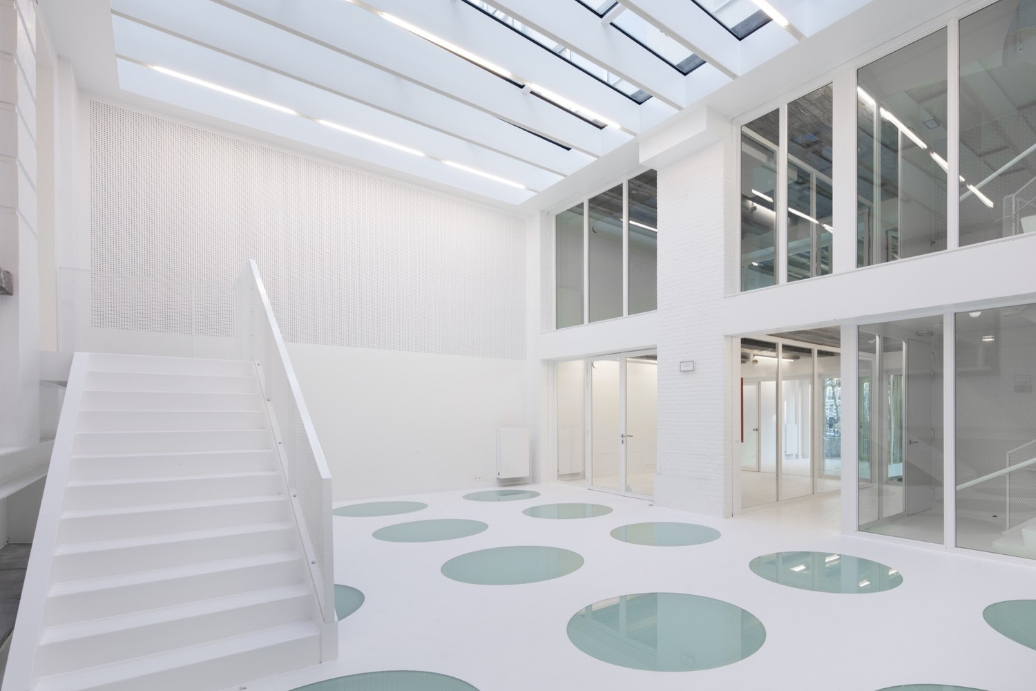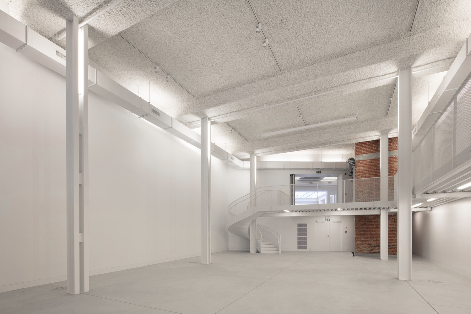 Interiéry sceluje bílá barva stěn, stropů i podlah. Pouze lokálně autoři očistili části původní konstrukce a nechali je v odhalené podobě – ať už jde o železobeton či pálené cihly. Při bourání některých stěn postupovali velmi opatrně s pečlivou přesností. Vnitřní prostory pak doplnili pestrou paletou materiálů a detailně řešených prvků.