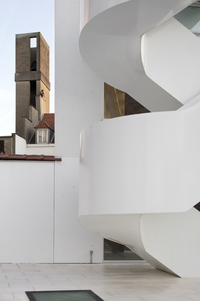 Málo využívaný administrativní a skladovací objekt v centru Bruselu měly nahradit nové kapacity sloužící místním designérům a módním návrhářům. Zadání architektonické soutěže navrhovalo stávající objekt zbořit a na jeho místě postavit novou budovu – studio ROTOR ve spolupráci s V+ se ovšem rozhodlo jít jinou cestou a objekt zachovat a precizně jej upravit pro nové využití.