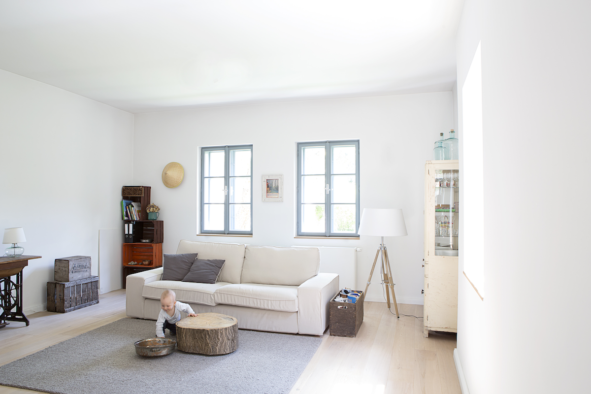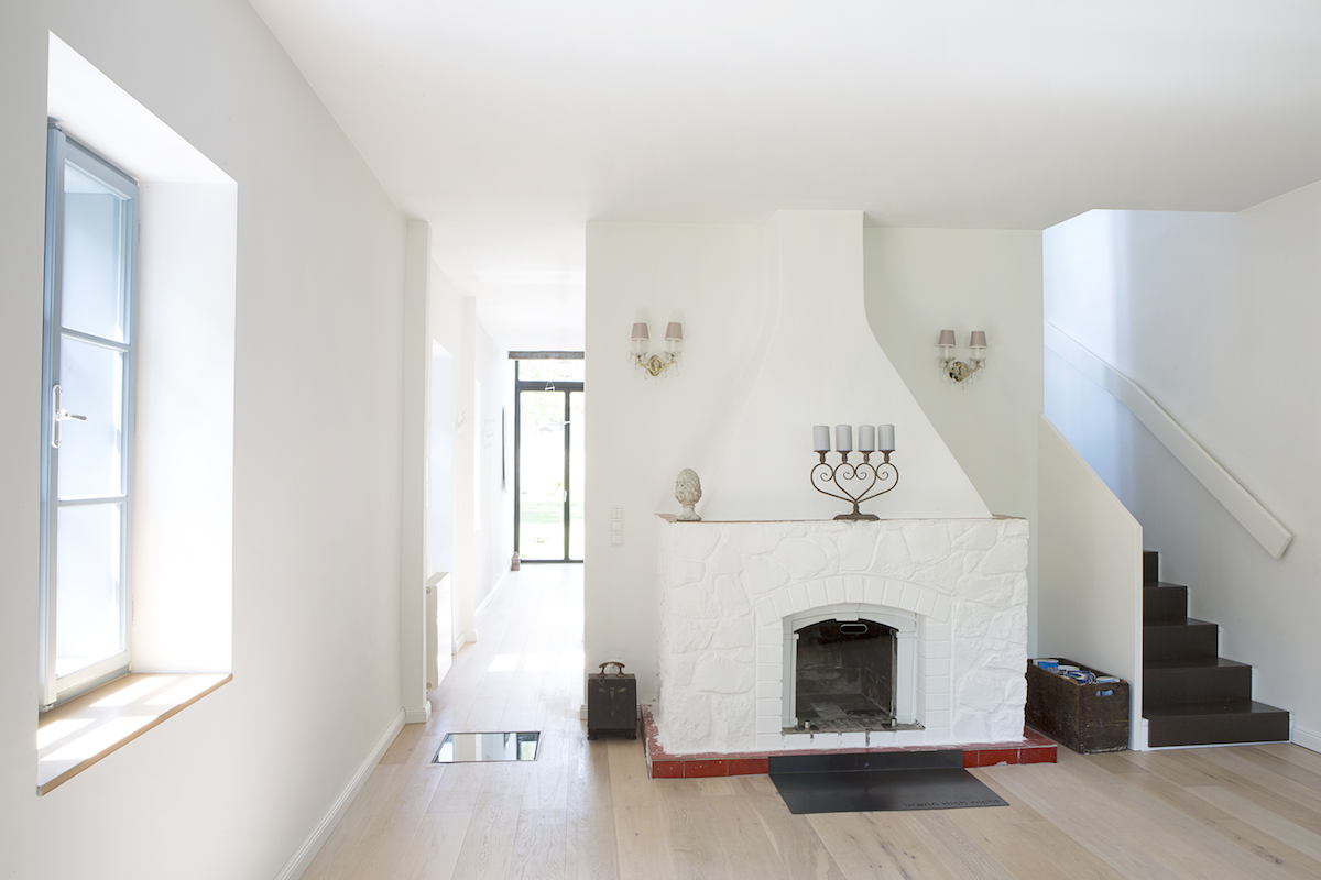 Nové řešení interiéru je příkladem důmyslné práce s dispozicí historické stavby. Architekt při návrhu nadčasového bydlení s citem pracoval s estetikou venkovského prostředí. Interiér laděný do tlumených barev nenarušuje venkovní vzhled bývalé stáje.