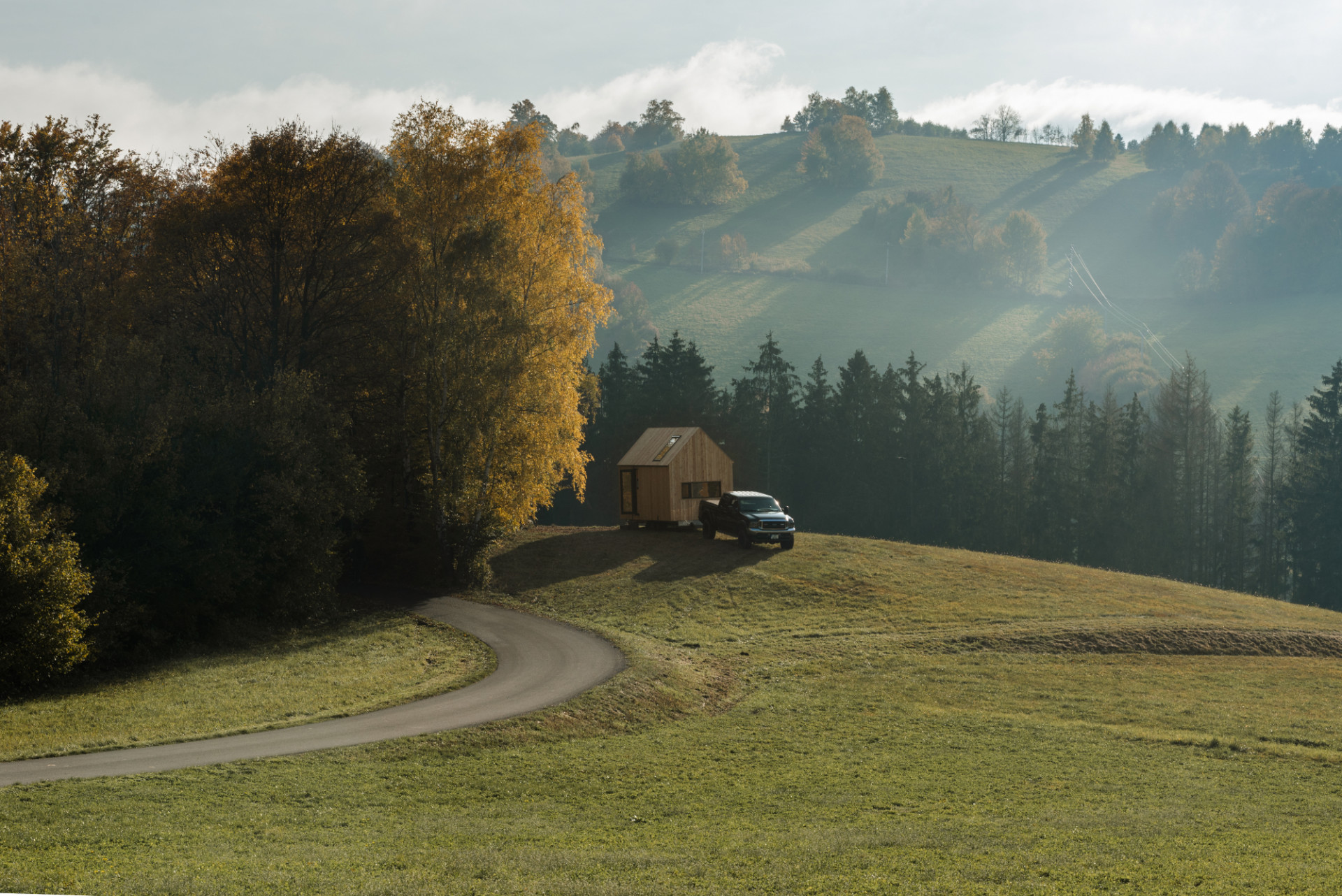 V touze po útěku z města během pandemie se dva sourozenci-architekti rozhodli navrhnout a vlastníma rukama postavit malý domek na kolečkách, kde by se člověk mohl na pár dní odpojit od reality. Domek najdeme ve vysočinské krajině, odkud autoři sami pocházejí.