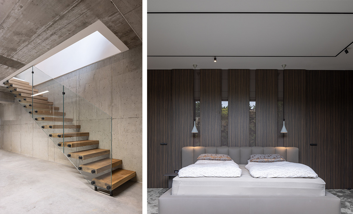 V okrajové části malebného moravského města vyrostl dvougenerační rodinný dům ve svažitém pozemku, který navazuje na volnou krajinu bez dalších sousedních objektů. Konfigurace a tvar pozemku se staly zásadními východisky pro dispoziční a objemové řešení a design domu. Symbióza funkčnosti a minimalismu je patrná na první pohled.