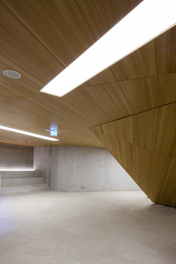 Koncertní sál může během jednoho představení navštívit až dvě stě osob. Pro diváky je zde připraveno minimalisticky pojaté hlediště. Kovová sedadla pomyslně levitují ve vzduchu a dávají dohromady třináct vyvýšených řad. „Zdánlivě průhledná sedadla, která jsou upevněna na železných plošinách, navozují dojem levitace nad světelnými štěrbinami,“ dodává hlavní architekt projektu Peter Haimerl.