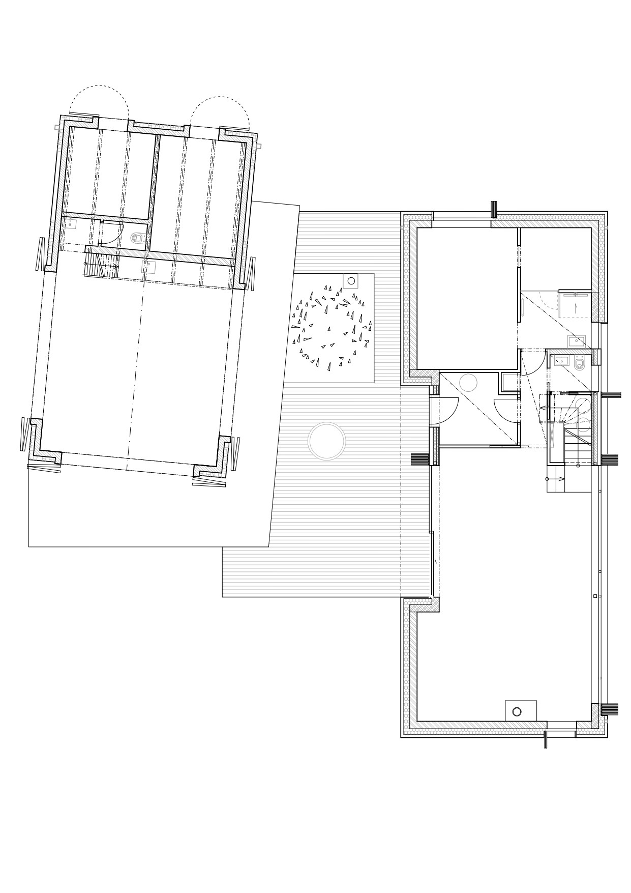 Stavby zároveň architekti provázali rozlehlou terasou a vytvořili tak útulný soukromý prostor pod otevřeným nebem. „Zrodila se koncepce paralelně postavených hmot, které mezi sebou vytvářejí terasu, která má privátnější charakter a je od okolí cloněna právě jednotlivými domy. Koncepce ale zároveň zachovává průhledy do krajiny a tradiční vesnický ráz a měřítko,“ vysvětlují architekti.