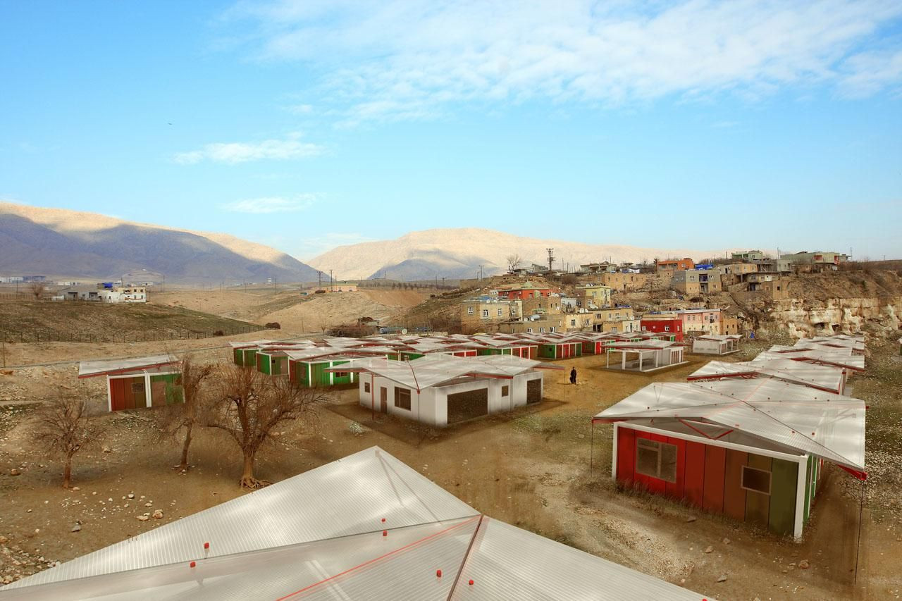 Jedním ze zajímavých příkladů krizových projektů, které KOMA nabízí, je právě tábor určený k dočasnému bydlení. Ten je vybudován systémem SmartSpacePack, přičemž domky jsou realizovány právě z odlehčených modulů. Ke každé skupině obytných celků je pak dodána hygienická stanice, která v sobě kombinuje zdroj vody, toalety a místo k praní prádla. V samotném středu pak může být umístěna buď administrativní budova, nebo nemocnice, škola apod.
