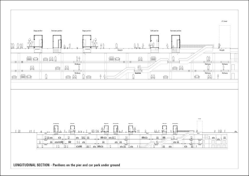 Cílem návrhu je vytvořit pulzující a přizpůsobivý městský prostor, který by propojil zahuštěné městské jádro s otevřeným přímořským horizontem. Na samotné molo pak bylo umístěno deset pavilonů, roztroušených podél světlíků od podzemního parkoviště. Pavilony jsou rozesety tak, aby umožnily nejrůznější aktivity: jsou zde kavárny, menší pódia, stánek s lístky na lodě, vstupy do garáží a technická věž, skrývající zvukové a světelné efekty pro případné koncerty, promítání filmů nebo divadelní hry.
