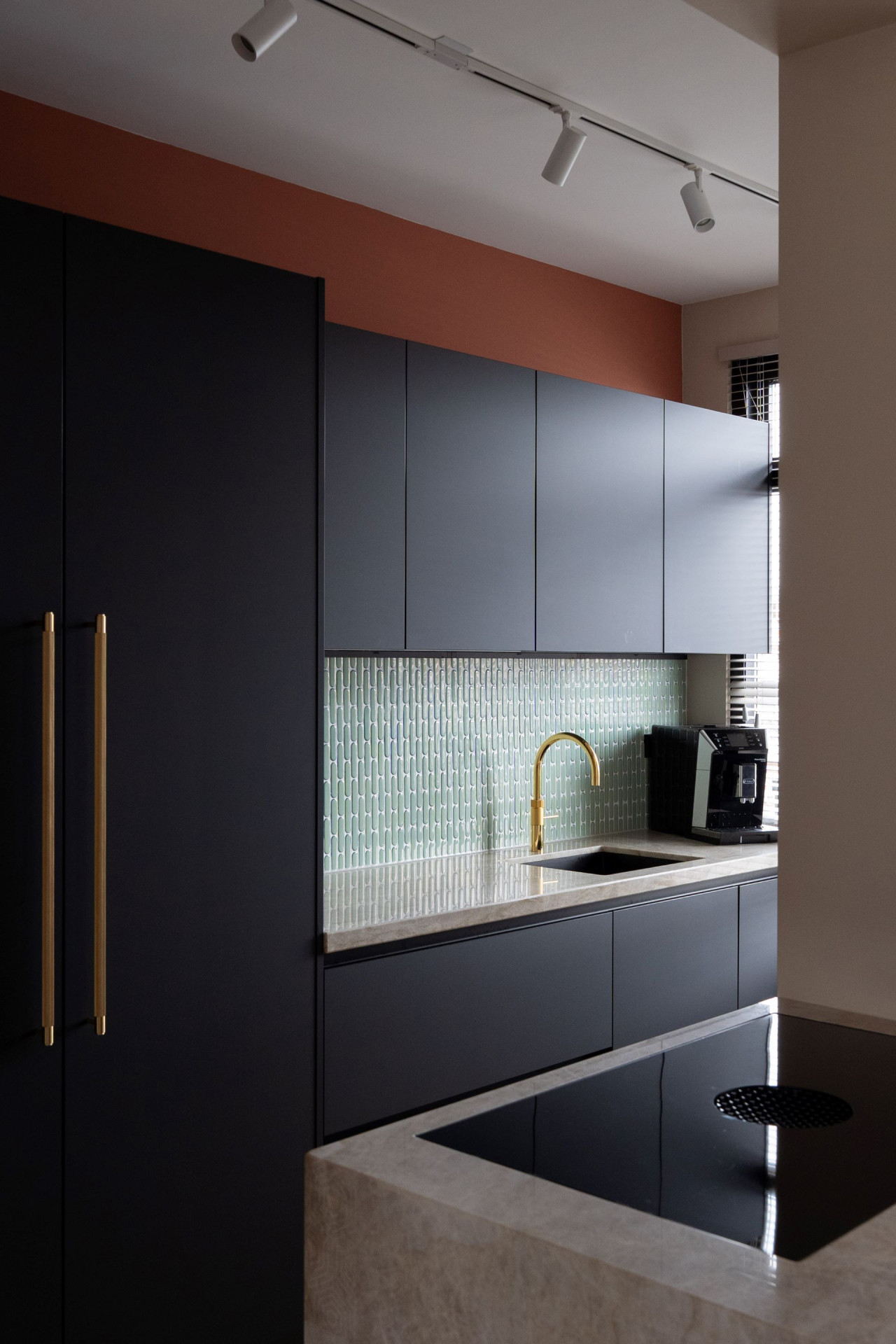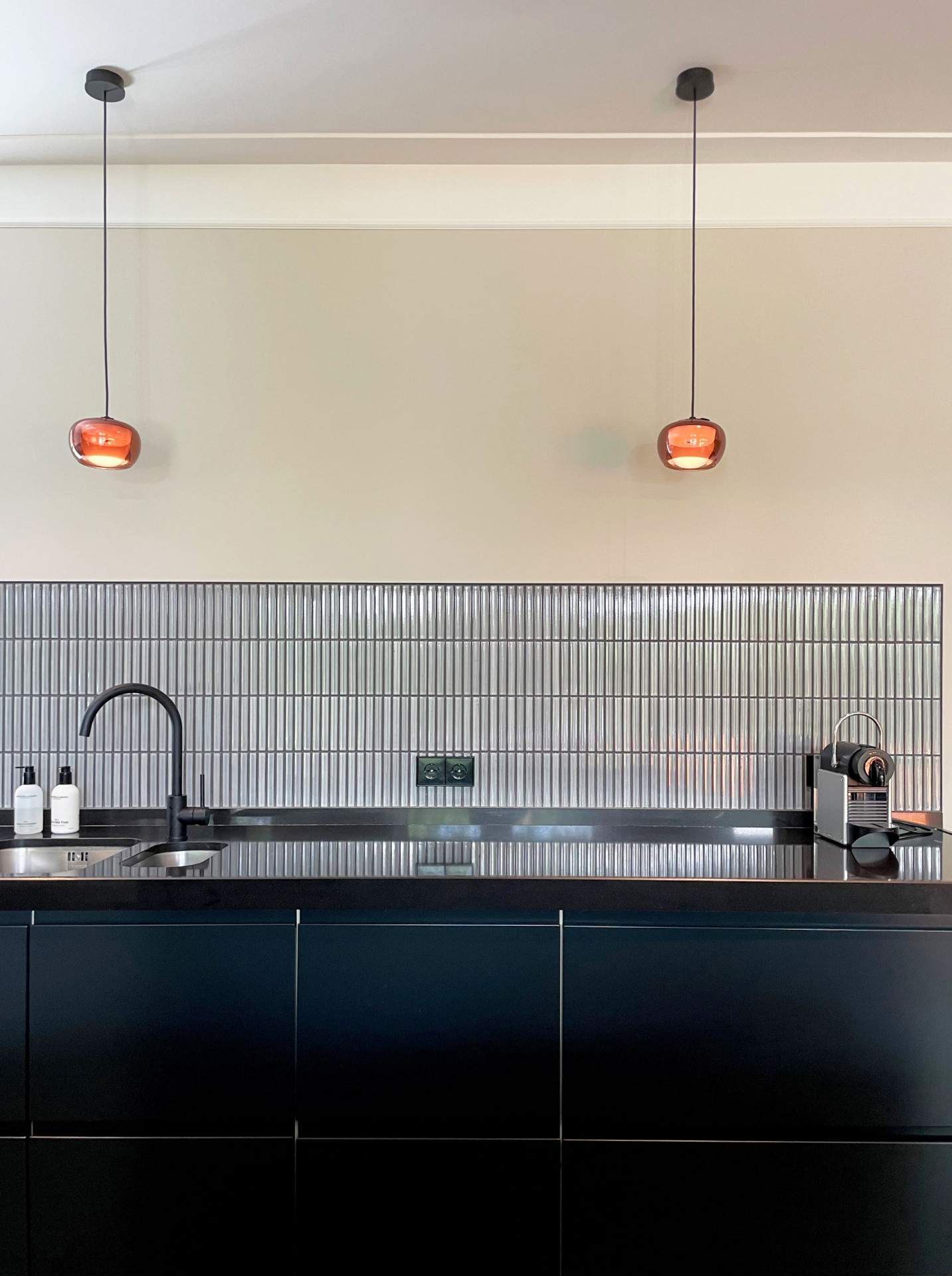V mozaice kombinuje různé tmavé tóny spolu s matnými a lesklými povrchy, které prostor povznášení na designový zážitek a jak sám zmiňuje, dokáží vyvolat pocit klidu: „Použití černých tónů přírody, jako je dřevěné uhlí, eben nebo černý turmalín ve vašich interiérech, vám poskytne klid stejně jako příroda sama.“
