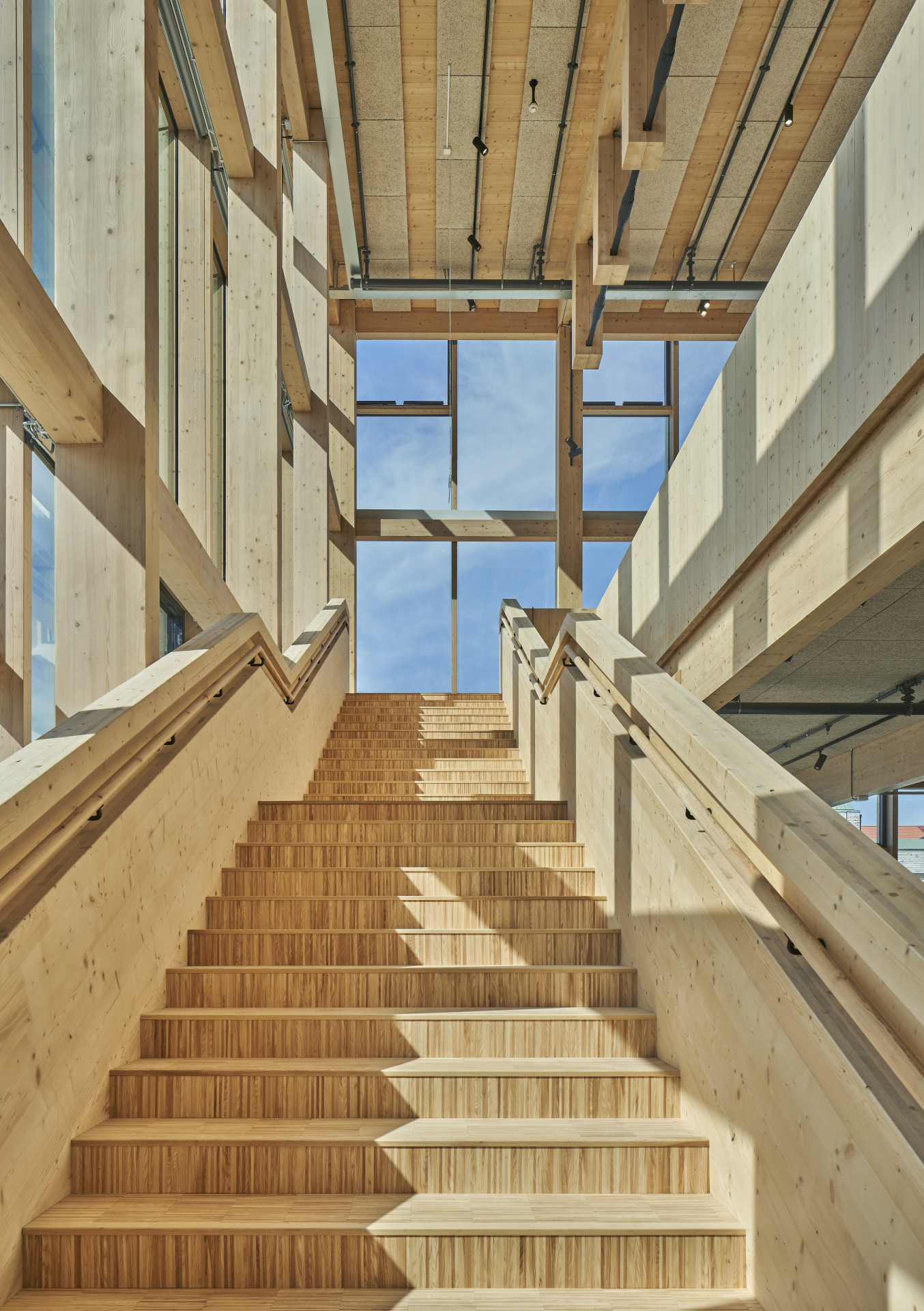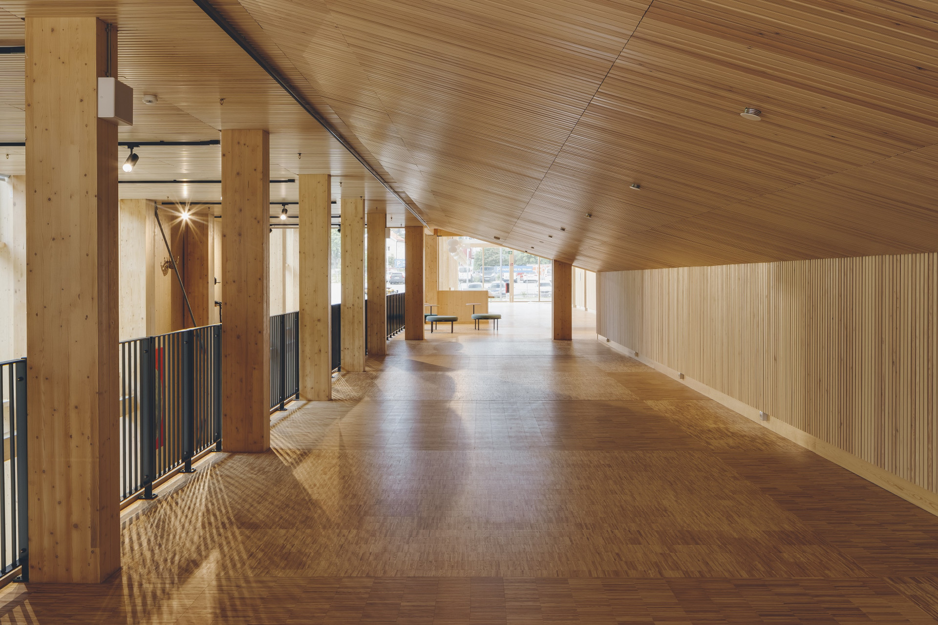 Aby budova působila přívětivě a otevřeně, nechali architekti velké množství ploch zasklít. „Umístění budovy v centru města, průhledné fasády a vstupy na všech stranách společně vytvářejí otevřené a příjemné místo,“ vysvětlují. Zvolili přitom hliníkové profily společnosti Aluprof. Je to právě hliník, který architekti stejně jako dřevo považují za materiál budoucnosti. „Při opětovném využití hliníkového šrotu ušetříme přibližně 95 % energie potřebné pro počáteční výrobu hliníku z bauxitu, což je extrémně energeticky náročný proces. Recyklace hliníku nám také umožňuje snížit znečištění ovzduší o 95 % a vody o 97 %,“ udává společnost Aluprof.