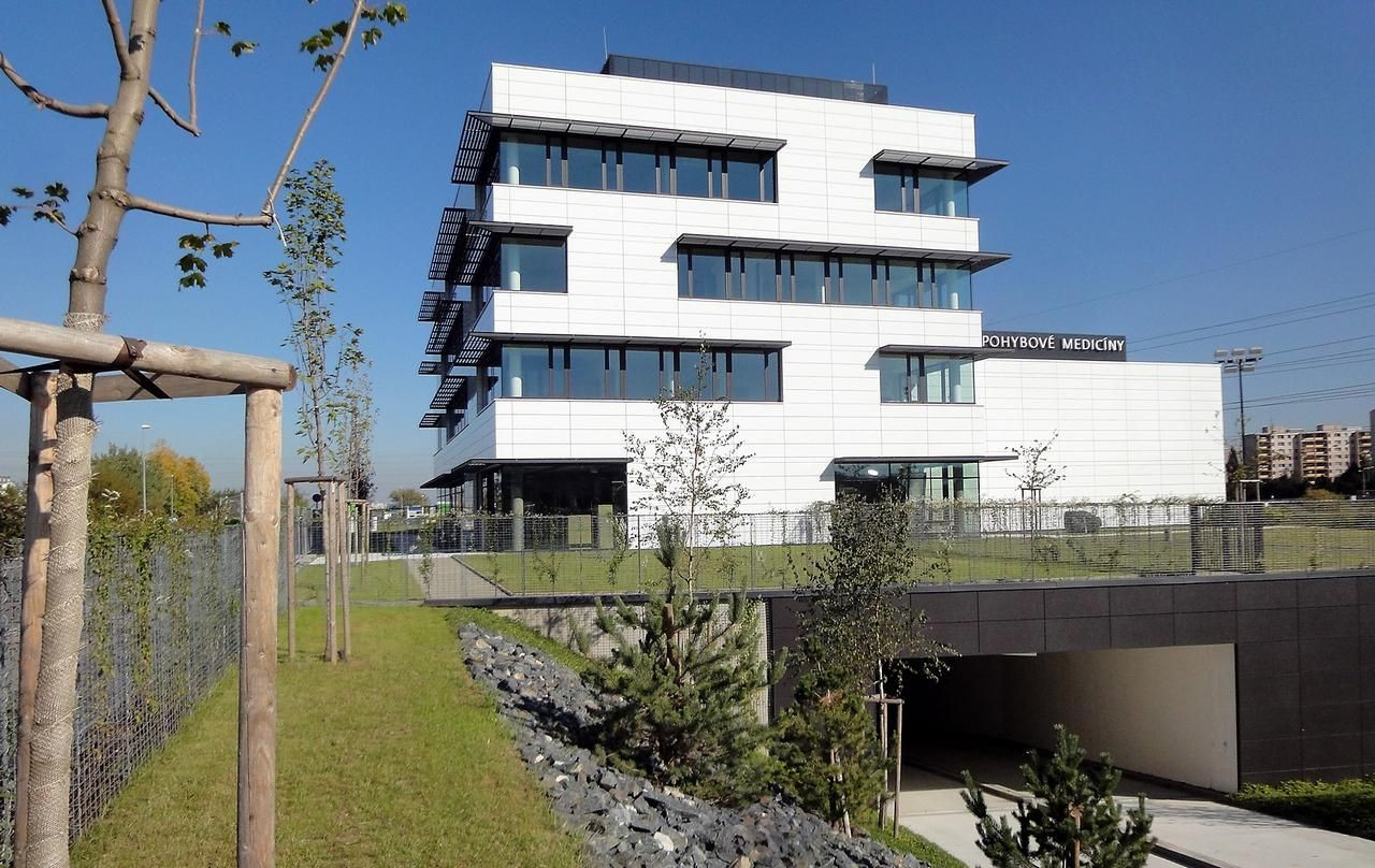 Nejnáročnějším úkolem při řešení vnitřní dispozice objektu bylo již od počátku návrhu na úrovni architektonické studie funkční sladění jednotlivých vzájemně propojených provozů, na které je podle požadavků investora budova rozdělena :Vstupní hala (v 1.NP) je navržena jako volný otevřený prostor, kam ústí všechny hlavní funkční celky v budově. Ze vstupní haly je přímý vstup do provozu restaurace a sportovního klubu. Do provozu lékařské rehabilitace se vstupuje po schodišti. Tímto schodištěm a výtahem je možno vstupovat i do administrativního patra. Samostatné schodiště propojuje vstupní halu s 2.PP, kde jsou garáže návštěvníků. Restaurace (rovněž v 1.NP) má odbytový prostor směrovaný do hlavní komunikace Pyšelské. Předpokládaná kapacita je 70 míst v odbytovém prostoru restaurace. Na provoz restaurace je napojen salonek, který je přístupný také z tenisového klubu. Zázemí restaurace je rozděleno do 1.NP a 1.PP, v přízemí je kuchyně a umývárny, v suterénu jsou přípravny, sklady, šatny a denní místnost zaměstnanců. Obě podlaží jsou propojena dvojicí výtahů. Tenisový klub s tenisovou halou (v 1.NP a 1.PP) - Tenisová hala má nepřerušené optické spojení interiéru tenisové haly s exteriérem v celé délce haly. Toto je zajištěno otvorem výšky 3,3 m a délky 36,3 m bez podpory. Do haly se vstupuje z 1.NP přes vstupní prostor (foyer), ze kterého je otevřený výhled do tenisové haly. Vstupní prostor je vybaven sezením a barem. Bar je obsluhován a zásobován z kuchyně restaurace, se kterou je propojen společným ofisem. Z prostoru klubu v 1.NP je výstup na letní terasu a venkovní dětské hřiště. Po schodišti nebo výtahem je přístup do 1.PP, kde jsou šatny, toalety sportovního klubu a wellness prostory. Z 1.PP je přístup na kurt v tenisové hale, k 3 venkovním kurtům a víceúčelovému hřišti. Současně je možné tenisovou halu využívat také jako přednáškový sál nebo jako sál pro společenské akce pro 250 osob. V případě tohoto využití je na povrch tenisového kurtu dočasně pokládána ochranná podlaha. Zdravotnické zařízení - Lékařská rehabilitace (ve 2. a 3.NP). Ve 2.NP jsou ordinace rehabilitačních lékařů a velká rehabilitační tělocvična. Ve 3.NP jsou samostatné ordinace rehabilitačních lékařů a specializovaná pracoviště: magnetická rezonance, rentgen, ultrazvuk, dvě masážní pracoviště, kardiozóna. Zajímavým úkolem se ukázal dodatečný požadavek budoucího uživatele na začlenění náročného provozu magnetické rezonance do provozního celku lékařské rehabilitace a na jeho umístění, kdy se musela řešit nejen přeprava celého zařízení (nejtěžší břemeno váží cca 8 000 kg) v nerozebraném stavu do již značně dokončené budovy, ale zároveň umožnit po nějaké době fungování tohoto lékařského přístroje jeho transport z budovy a případnou instalaci nového zařízení. To se podařilo vytvořením transportní cesty do centra dispozice tak, že byly upraveny návrhy konstrukcí výplní otvorů, zavěšené fasády, podlah, příček a všech instalací na transportní cestě tak, aby byly bez poškození demontovatelné, s možností uvedení do původního stavu s co nejmenšími náklady. Jednací a přednáškové prostory jsou v samostatném administrativním podlaží ve 4. NP. Garáže (ve 2.PP) jsou navrženy pro 35 osobních vozů. Na povrchu vznikne 61 nových parkovacích stání. Venkovní sportoviště se skládají ze tří venkovních tenisových kurtů a víceúčelového hřiště.