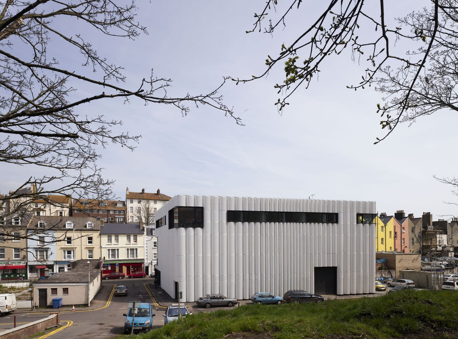 Folkestone je známý především tím, že v něm ústí železniční Eurotunel. Jinak se jedná o přímořské město velikosti Jihlavy, kde jsou lidé živi i něčím jiným než obřím dopravním terminálem. Zanedbávané centrum podstupuje regenerační proces, který je pozoruhodný právě tím, že se do centra obce snaží přivést kulturu a umění. Projekt razí charitativní trust The Creative Foundation a jeho součástí je i Quarterhouse, víceúčelové centrum umění a obchodu od Alison Brooks Architects.