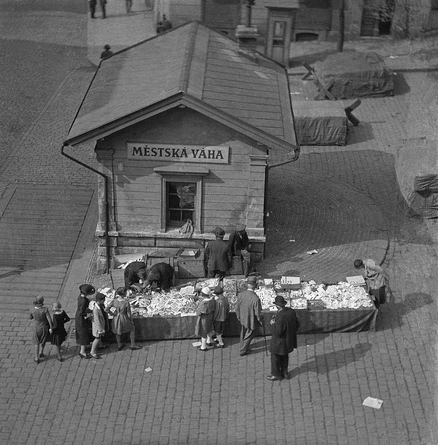 Náměstí oživuje také několik prvků, které odkazují na jeho historii. První z nich je váha, která připomíná tu původní městskou, na kterou najížděla auta obchodníků z nedaleké žižkovské tržnice. Přezdívku Vážák však náměstí ztratilo počátkem padesátých let. Při stavbě tunelu, jež propojil Žižkov s Karlínem, byla váha zbourána. „Na místě bývalé městské váhy je v dlažbě naznačen její obrys a nově je doplněna opravdová váha. Denně na ni vstoupí množství kolemjdoucích. Kvůli teplotním změnám neváží zcela přesně, ale zpravidla je pak slyšet smích,“ říká Štěpán Valouch z ateliéru OVA.