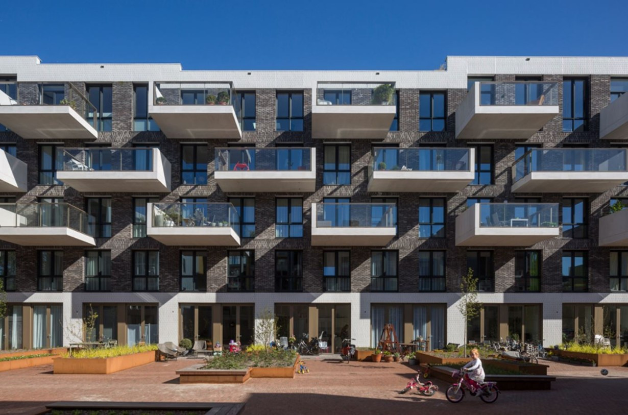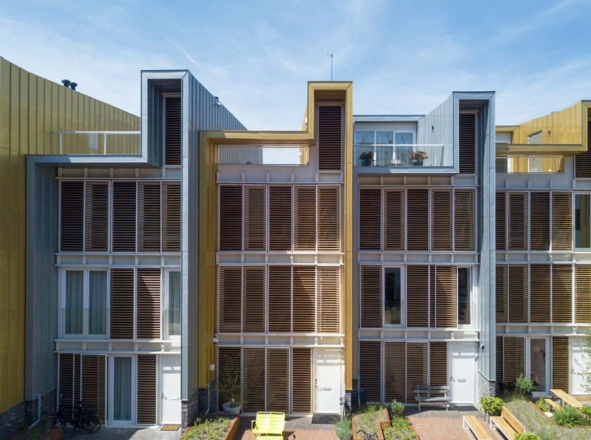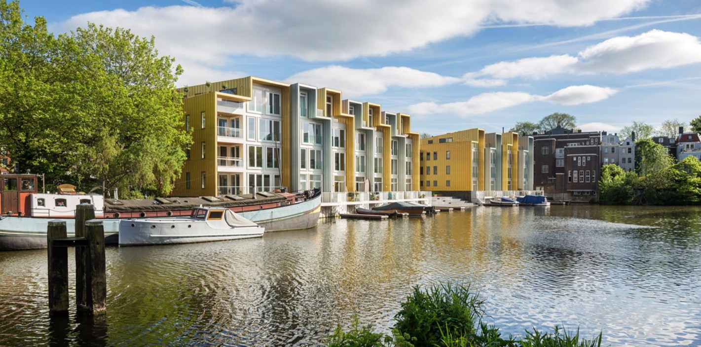 Na místě bývalého průmyslového podniku Wiener & Co v Amsterdamu vznikl soubor bytových domů od lokálního studia Arons en Gelauff. Na břeh jednoho z kanálů umístili architekti budovy s úzkým a podlouhlým půdorysem, které připomínají úzké domy typické pro nizozemská města. Pobřežní objekty s netradičními plášti ze zlaté měděné slitiny a zinku doplňují tvarově i materiálově odlišné cihlové domy, které tvoří uliční profil.