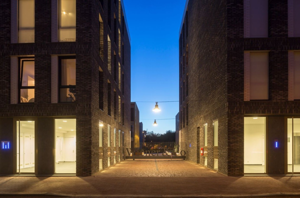 Projekt bydlení v Amsterdamu od studia Arons en Gelauff architecten propojuje ulici s kanálem a nahrazuje staré průmyslové budovy firmy Wiener & Co, které zde původně stály. Architekti se inspirovali materiály používanými dříve při lodní dopravě – neopracovaným dřevem a kovem – a použili zlatou měděnou slitinu a „stříbrnošedý“ zinek, čímž odkázali na zdejší dlouhou historii loděnic.