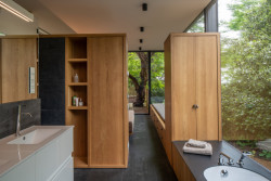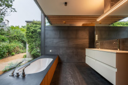 Vytvořili moderní přístavbu s ocelovou konstrukcí a stěnami ze skla. "Sklo je nejtenčí "zdící" materiál. Vynechali jsme také vnitřní příčky a prostor rozdělili jen vestavěnými skříněmi," vysvětluje architekt. Nosná konstrukce je z oceli, která je subtilní a zároveň umožňuje velkou přesnost. Jen malá část pláště je z místní žuly, aby se stará a nová část vizuálně propojily a sjednotily. Výsledkem je minimalistický dům, „splněný modernistický sen,“ jak to nazývá architekt.