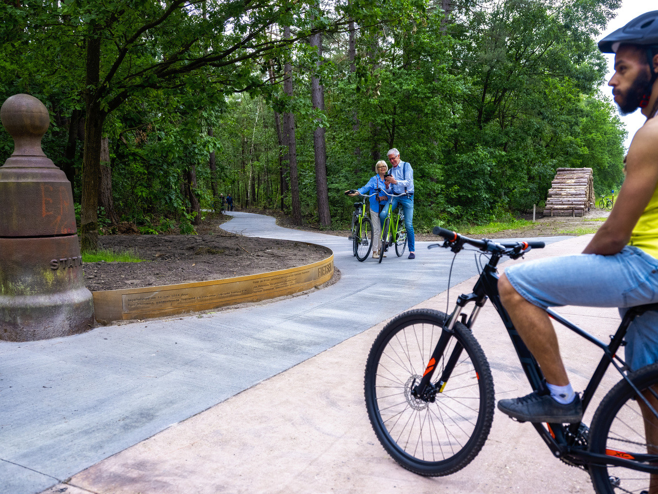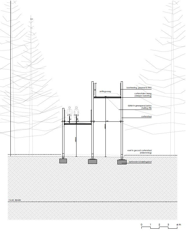 Stromy pokácené při výstavbě byly využity pro postavení odpočívacího stanoviště na začátku okruhu. Kmeny naskládané na sebe také vytvářejí místa pro posezení. Inspirativní krajinářský projekt vyniká svou přirozeností a citlivostí, s jakou doplňuje své okolí. Stezky v korunách stromů jsou fenoménem posledních pár let – cyklostezku korunami stromů ovšem najdeme pouze v tomto belgickém lese.