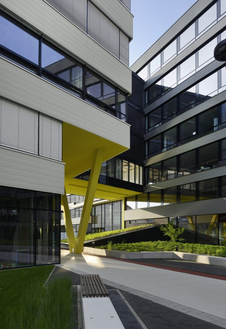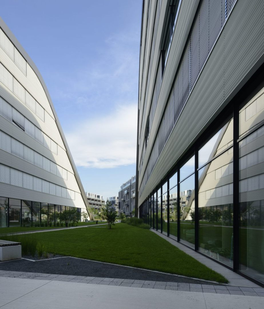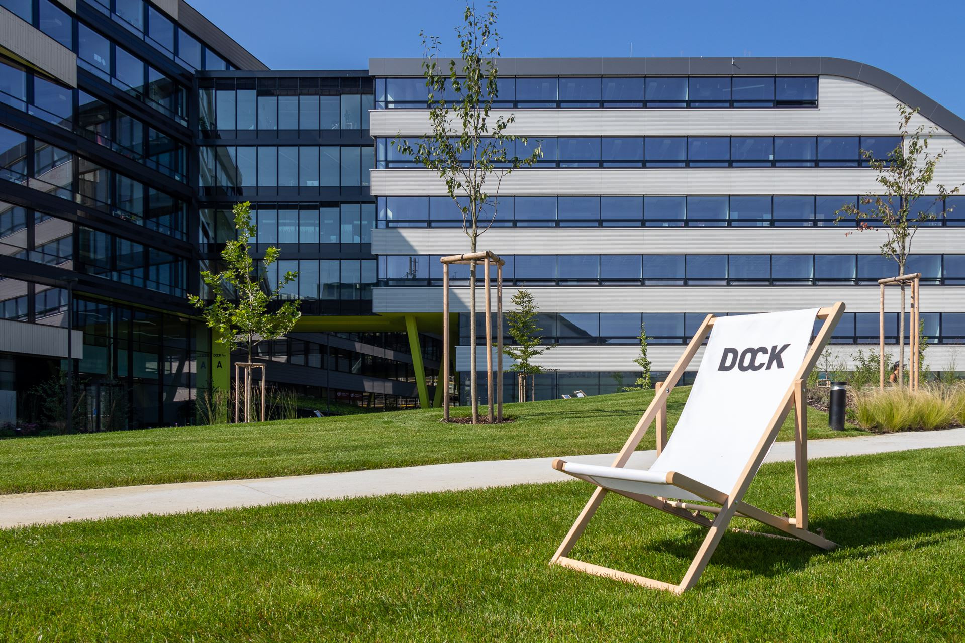 Kancelářskou budovu DOCK IN FOUR formuje vlnitá černobílá fasáda, pásová okna a zelená střecha, která se nápaditě snižuje směrem k řece. Objekt při břehu Vltavy disponuje nejvyšším standardem vybavení, poskytuje klidné a zdravé pracovní prostředí a otevírá se působivým výhledům.
