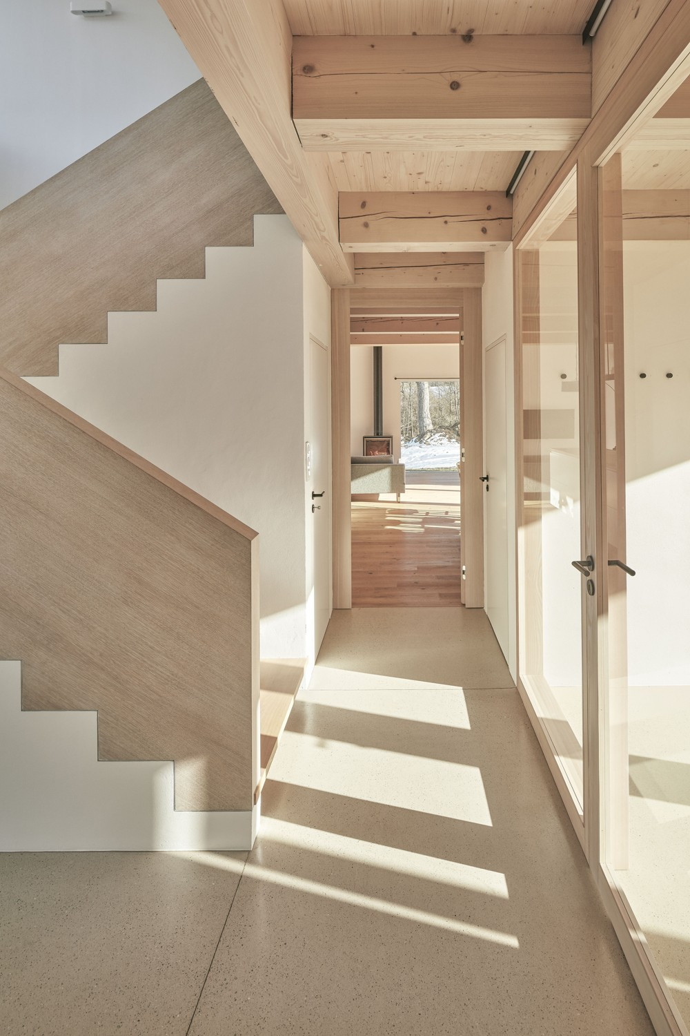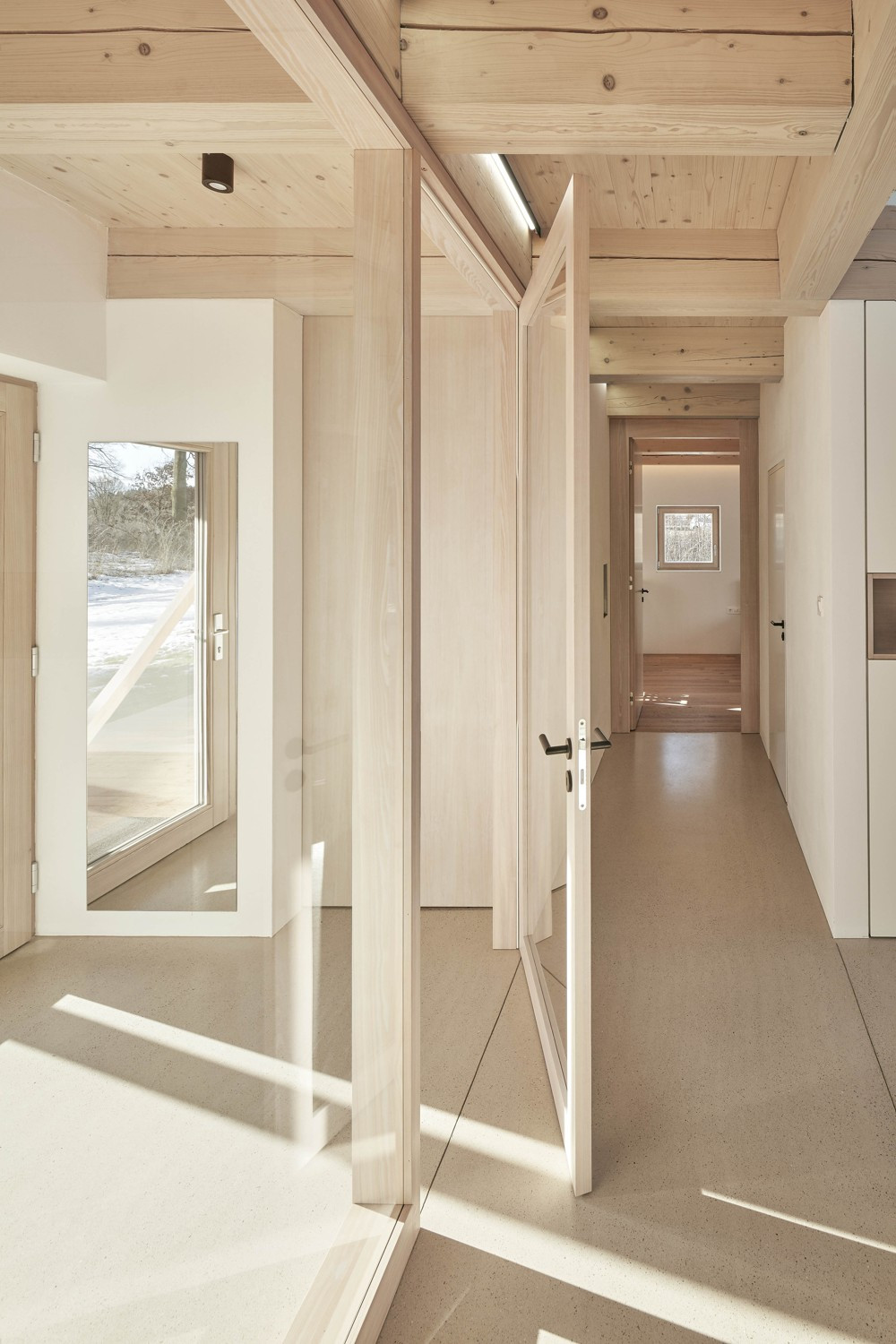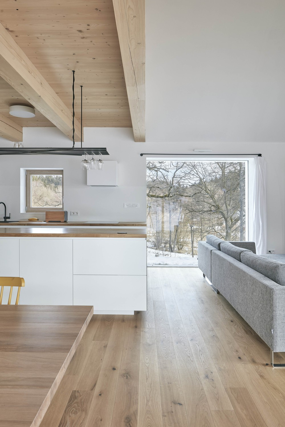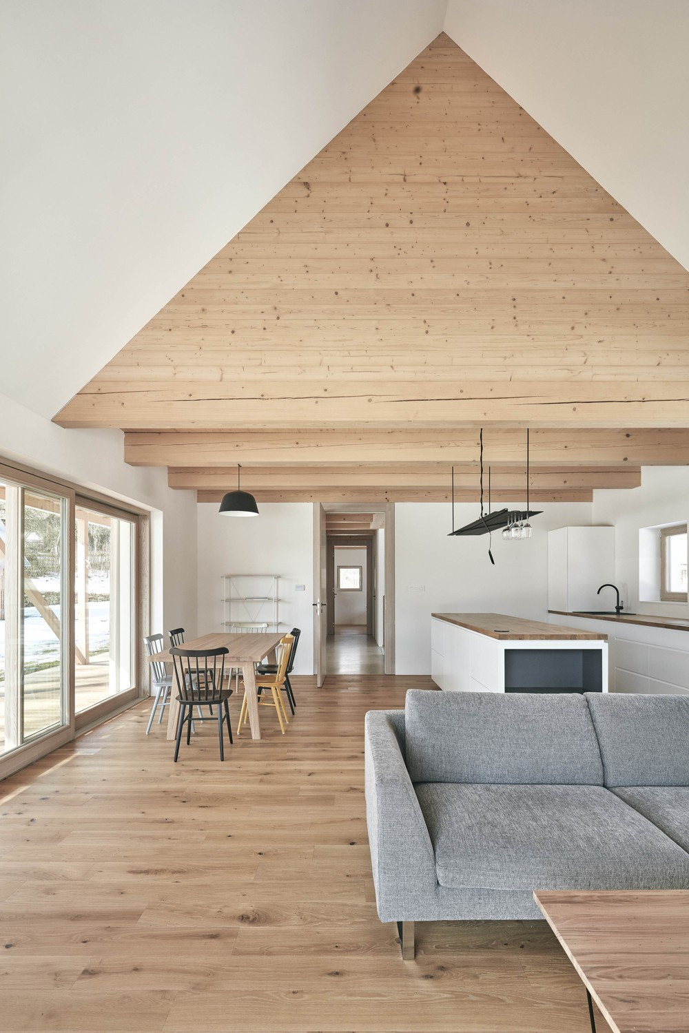 V malé obci na Vysočině vznikly dva hmotově příbuzné objekty. Dvoupodlažní stavba slouží bydlení, sousední stodola pak funguje jako garáž a skladovací prostor. Architekti Pavel Machar a Radek Teichman navrhli dům se stodolou tak, aby svým charakterem korespondovaly s okolním venkovským prostředím. Obě stavby navíc vycházejí z půdorysné stopy bývalého statku.