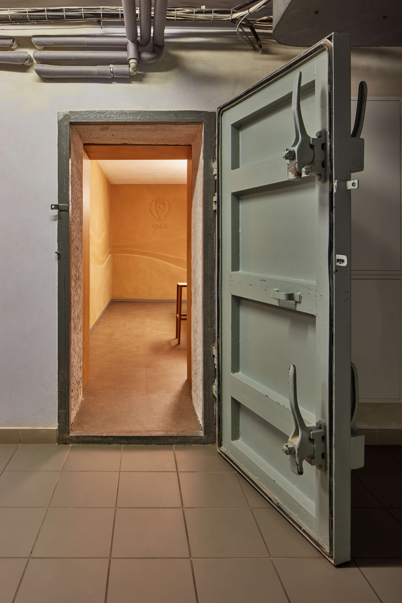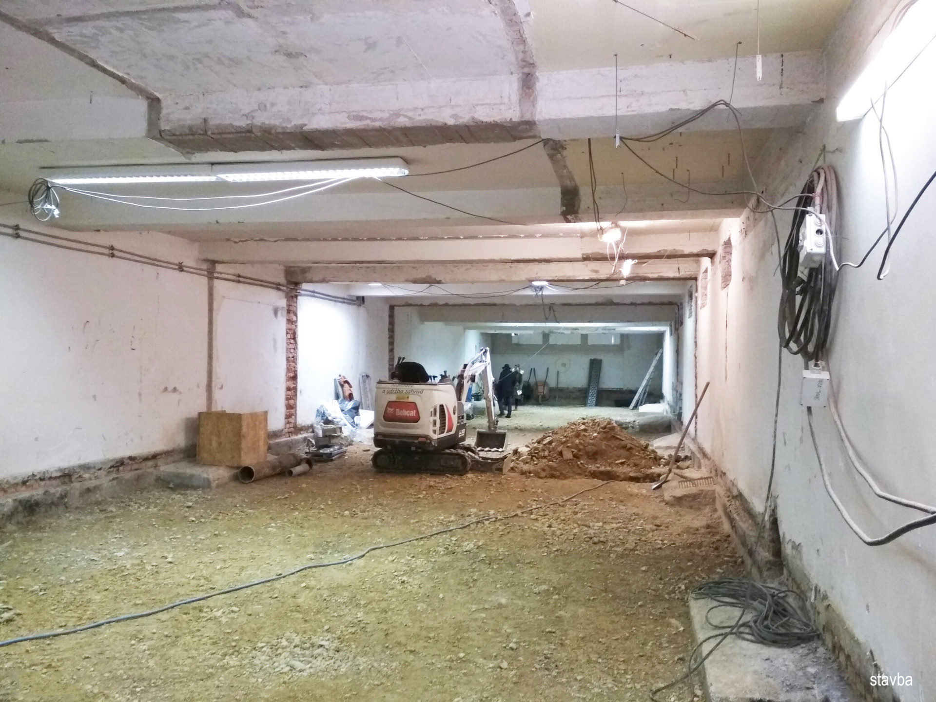 Aby se v suterénu dalo sportovat, muselo se hodně bourat, původně tady totiž byly malé temné místnosti. „Nad suterénem se nachází sedm pater kanceláří a bytů, díky skeletové konstrukci jsme si však mohli dovolit všechny vnitřní příčky vybourat a navrhnout odpovídající dispozici pro nové využití,“ popisují MENU architekti, kteří stojí za návrhem proměny suterénu.