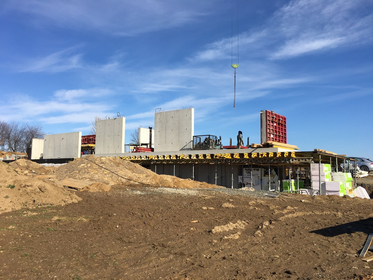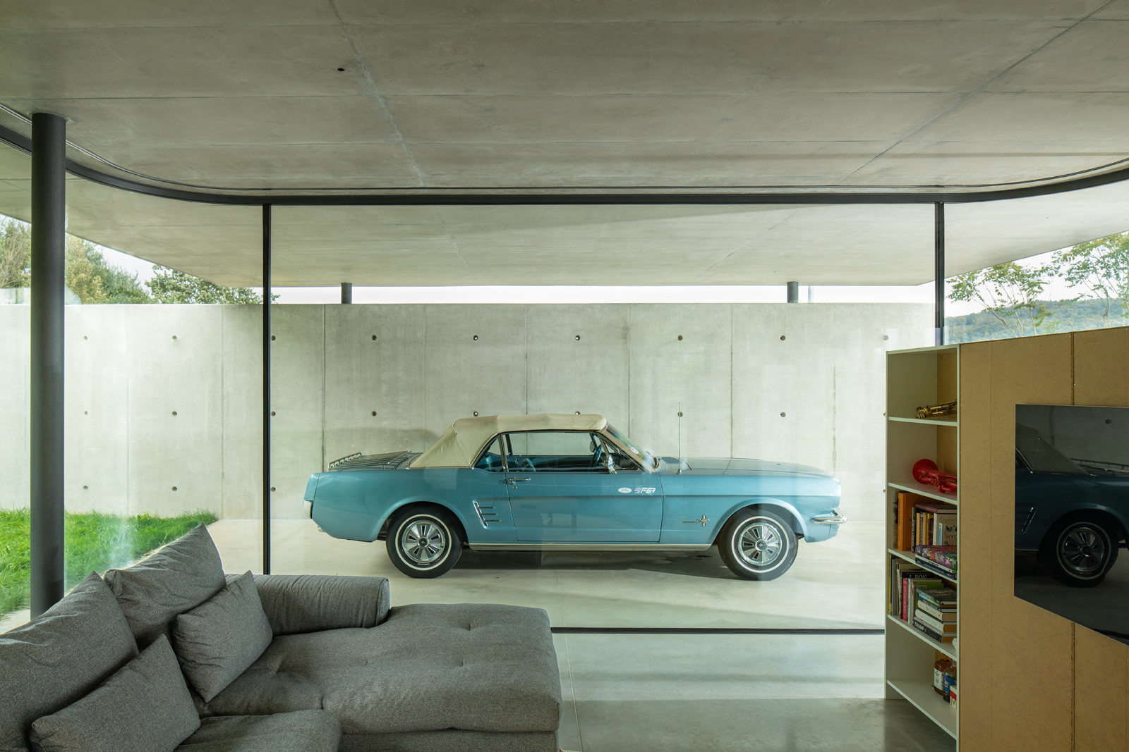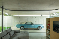 Kromě toho, že má investor zálibu v autech a lodích, miluje také beton. A proto je i konstrukce domu železobetonová. Chladný beton se stal pohledovou částí jak interiéru, tak exteriéru. Odkazuje navíc na tradici nedalekého kamenolomu. Bednění pro realizaci monolitických konstrukcí dodala firma PERI, jež je spolehlivým partnerem pro výstavbu i rekonstrukci objektů jakýchkoli velikostí.