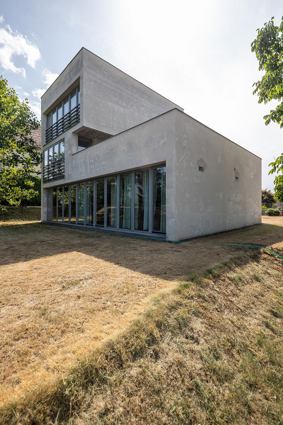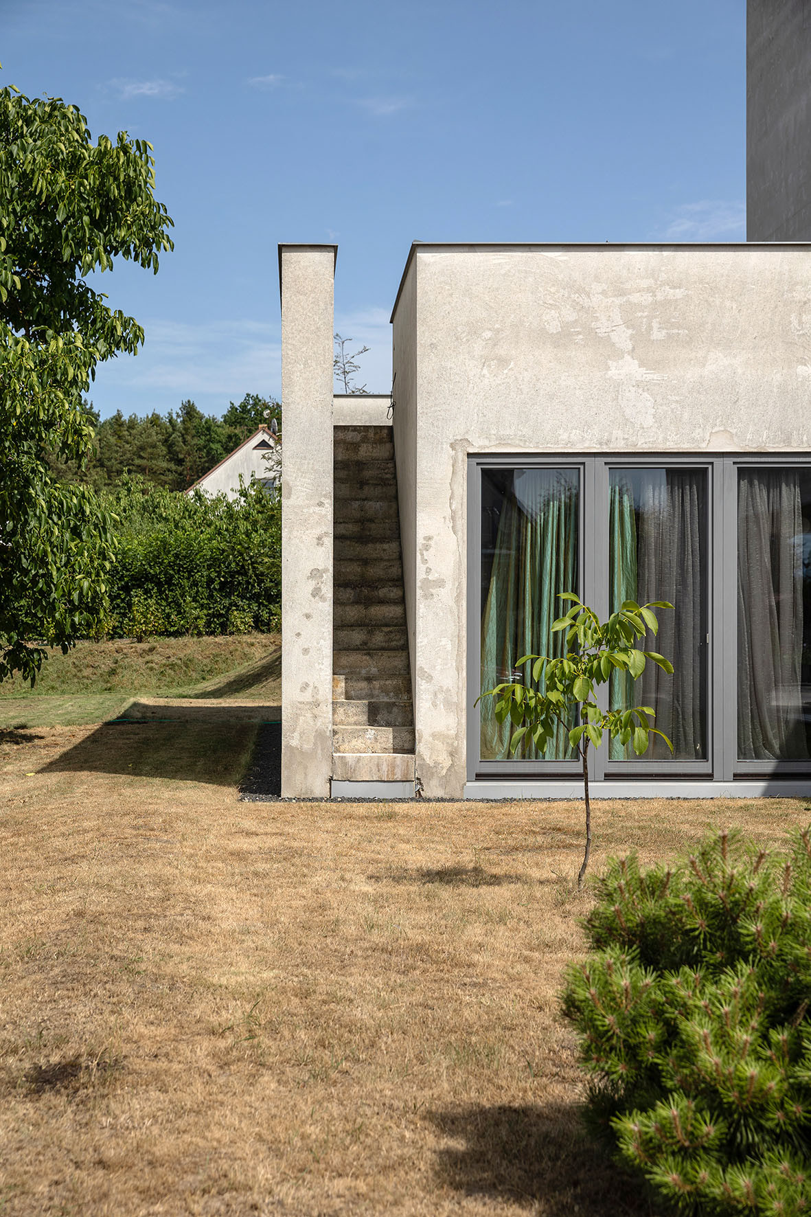 Pro dům hledal několik let místo po celém okolí Budějovic, až zakotvil ve Včelné, pár kilometrů od krajského města. V klasické zástavbě meruňkových fasád s valbovými střechami působí vila jako osvěžující zjevení. „Chtěl jsem, aby Ivan navrhl dům pro mou ženu. Věděl jsem, že si s ním natolik rozumím, že není potřeba zadání více upřesňovat. Samozřejmě následovala fáze diskuzí nad optimálním tvarem a dispozičním řešením, až z toho nakonec vznikl opět dům spíše pro mě,“ říká jeho obyvatel s lehkým úsměvem.