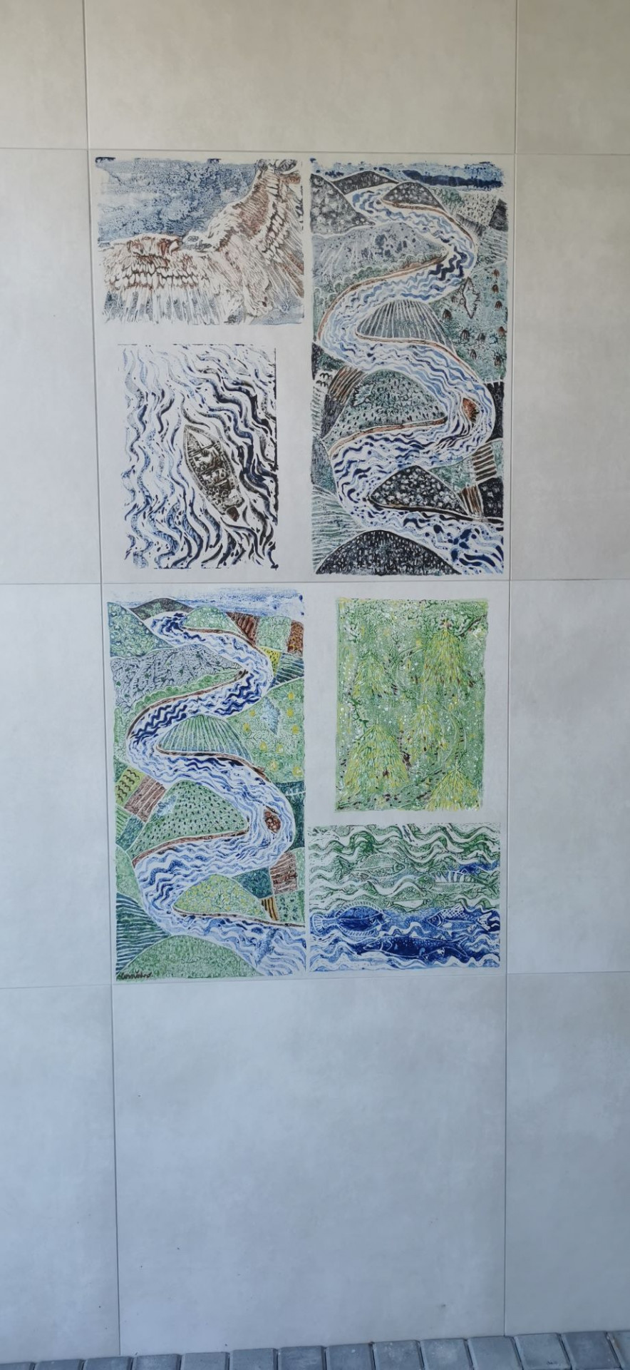 Aby architekti usnadnili orientaci obyvatel, rozhodli se hlavní vchody do jednotlivých domů pojmout netradičně a věnovat jim individuální péči. O jejich podobu se postarali výtvarníci Marek Ormandík, Ivica Markovičová, Veronika Cvinčeková, Mišo Ormos a Oto Hudec. Ivica Markovičová, Oto Hudec a Veronika Cvinčeková zvolili pro svá díla námět řeky. Pro první umělkyni symbolizuje přirozené plynutí života a rozmanitost událostí, které přináší, zatímco Oto Hudec se zaměřil na pojetí řeky jako vodního živlu. „Ruce na obraze symbolizují meandry řeky, dlaně o ni citlivě pečují a zároveň její tok usměrňují,“ vysvětluje hlavní motiv svého obrazu výtvarník. „Voda, řeka, obzor, sen. Já sním o místě, kde hnízdí supi bělohlavé a živel vytvořil nevídanou krásu,“ říká ke svému pojetí tématu Veronika Cvinčeková. Vstupní prostor čtvrtého z domů ozvláštňují strážní andělé Marka Ormandíka. Jeho malby také zpestřují prostor hřiště ve vnitrobloku.