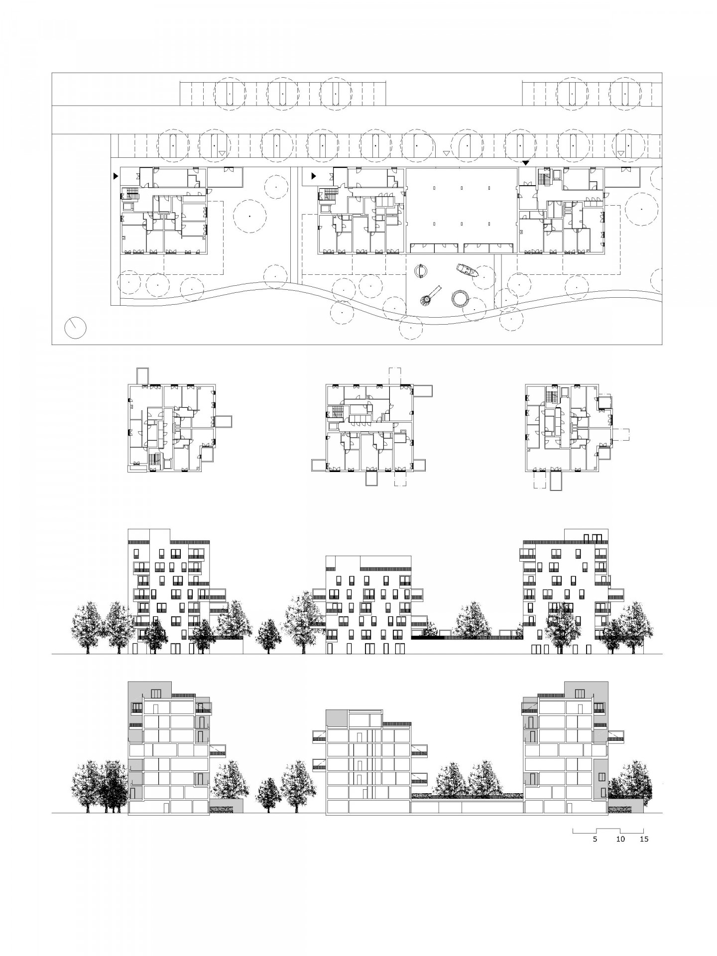 Prostor mezi jednotlivými domy proto slouží nejen pro parkování automobilů, ale najdeme tu také dětské hřiště, komunitní zahradu, prostranství pro piknik a relaxaci včetně pingpongových stolů. Podobně jako veřejný prostor jsou i byty řešeny variabilně tak, aby vyhovovaly široké škále potenciálních obyvatel: přízemní s menší předzahrádkou, v patře pak s balkonem, lodžií nebo střešní s terasou.