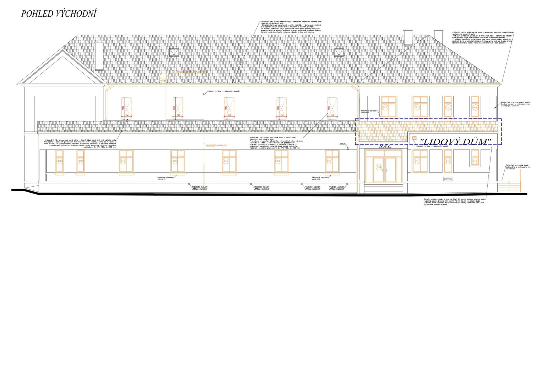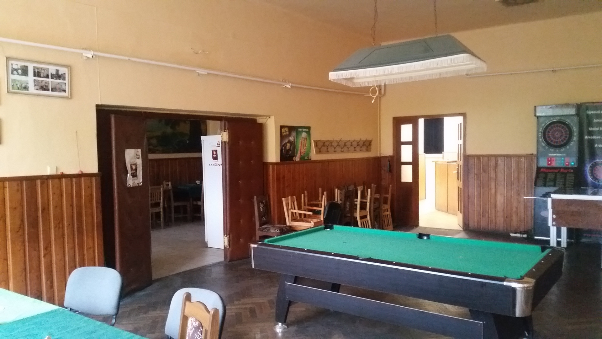 Lidový dům nikdy nesloužil jen sezení v hospodě, pro obec byl podstatný také jeho společenský sál. Jelikož se stavba rekonstruovala úplně celá včetně technických rozvodů, dostál i on podstatného zlepšení. Vybavily ho nové technologie, rozjasnil čerstvý bílý nátěr a také obnovená okna pod stropem - původně zde byla, časem se ale nechala zazdít, nyní opět slouží. Akustiku zase zlepšil dřevěný obklad, který se barevně hodí k dřevěnému vybavení hospody.