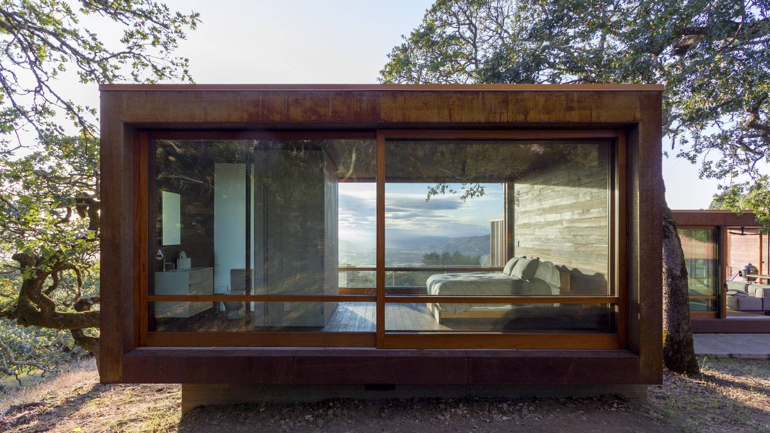 Nad kalifornským údolím se vznáší prefabrikovaný modulární dům od studia Alchemy