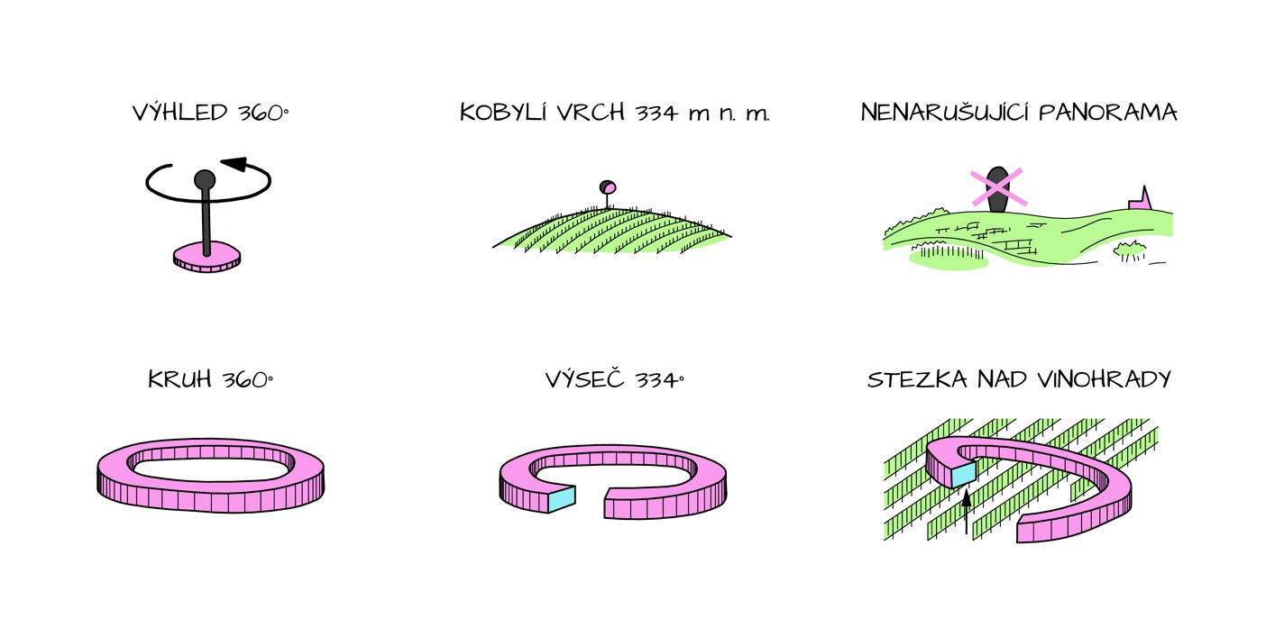 O víkendu se v Kobylí na jižní Moravě otevře unikátní rozhledna bez jediného schodu. Jejími autory jsou architekti brněnského ateliéru Keeo4design. Stezka nad vinohrady má tvar kruhové rampy s výsečí 334° a vystupuje nad vinařské okolí. Při dobré viditelnosti z ní lidé dohlédnou až na vrcholky rakouských Alp.