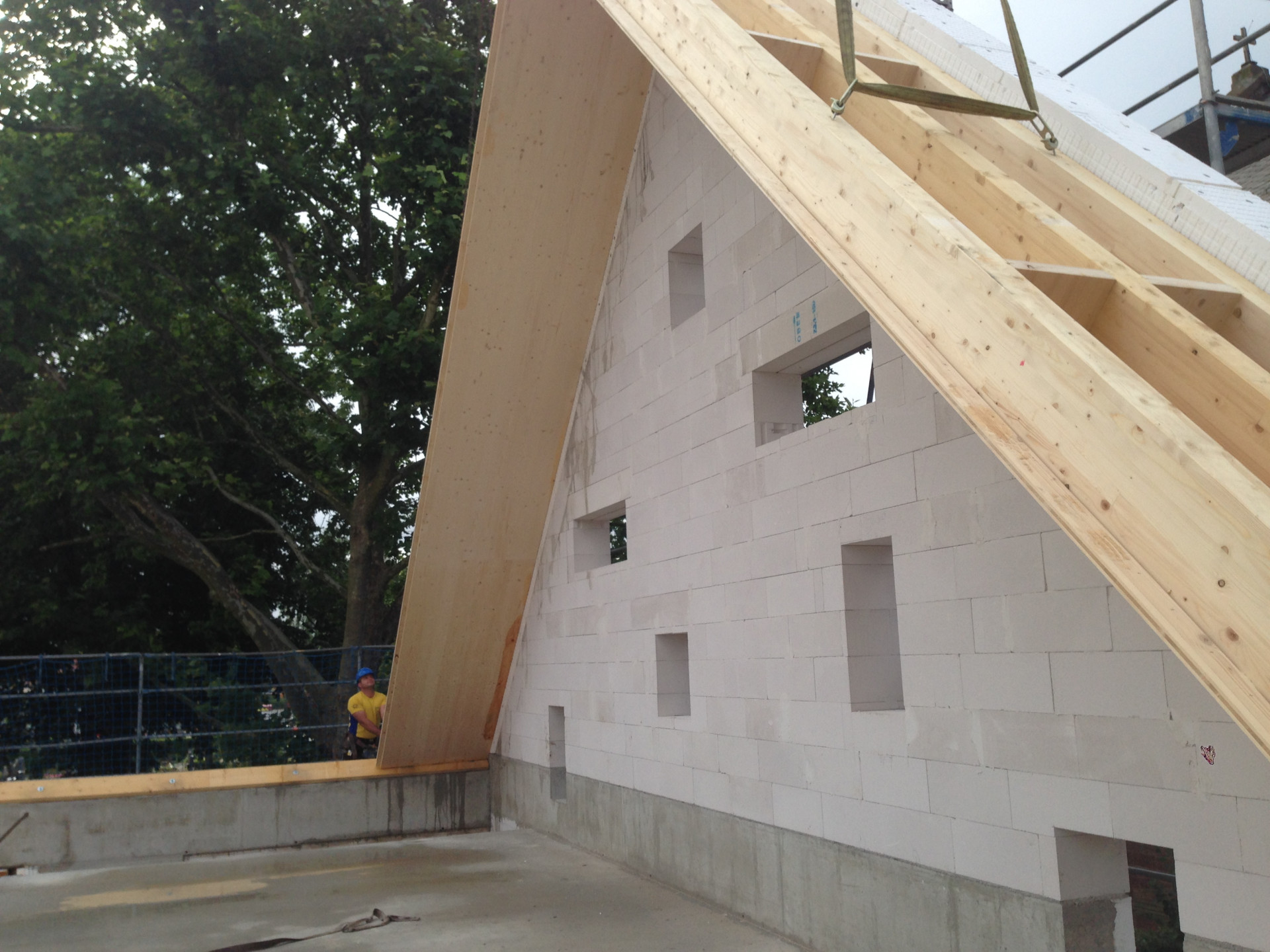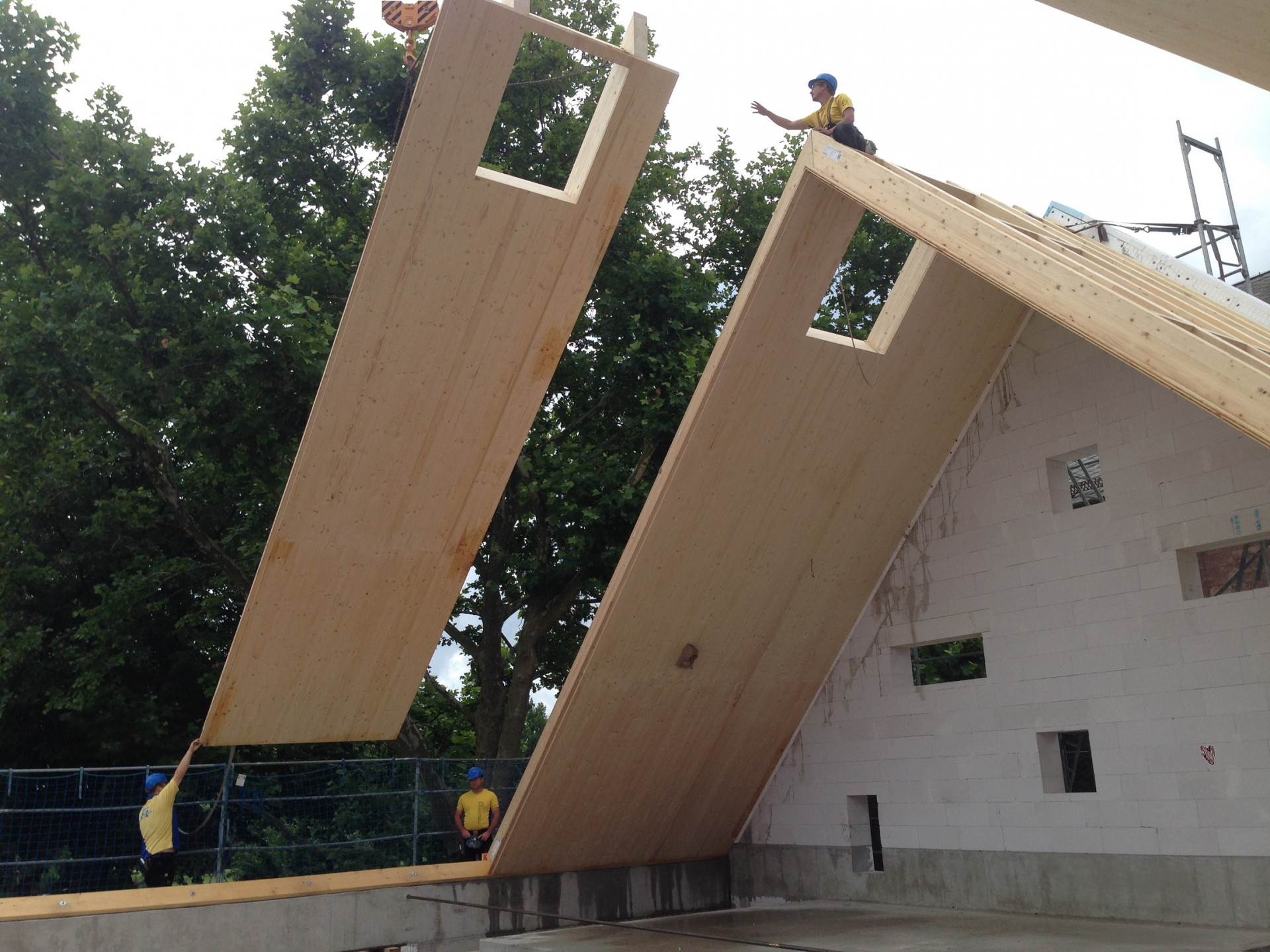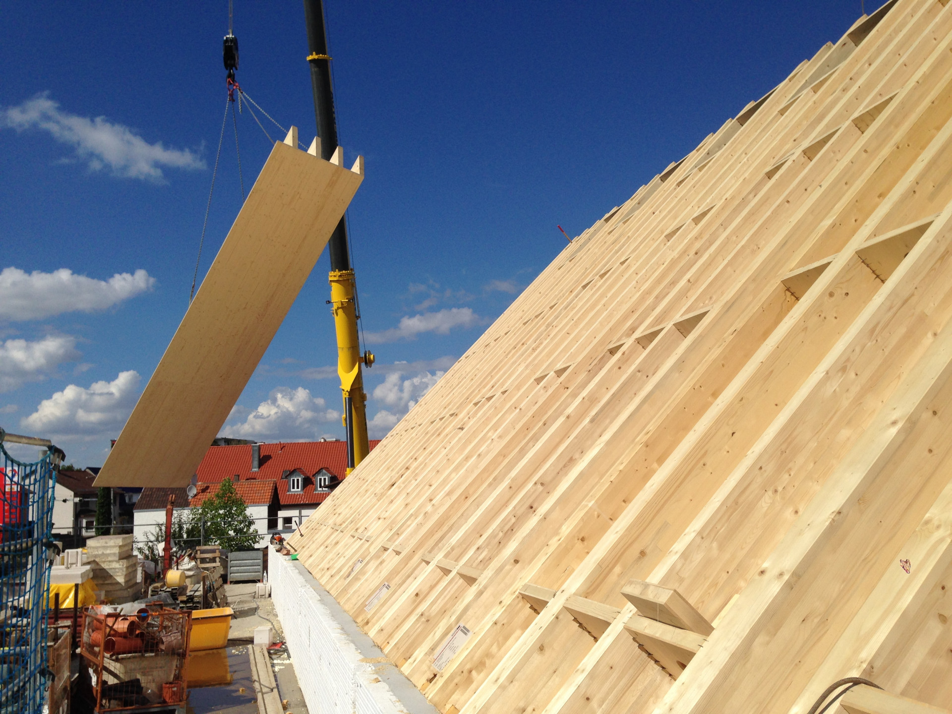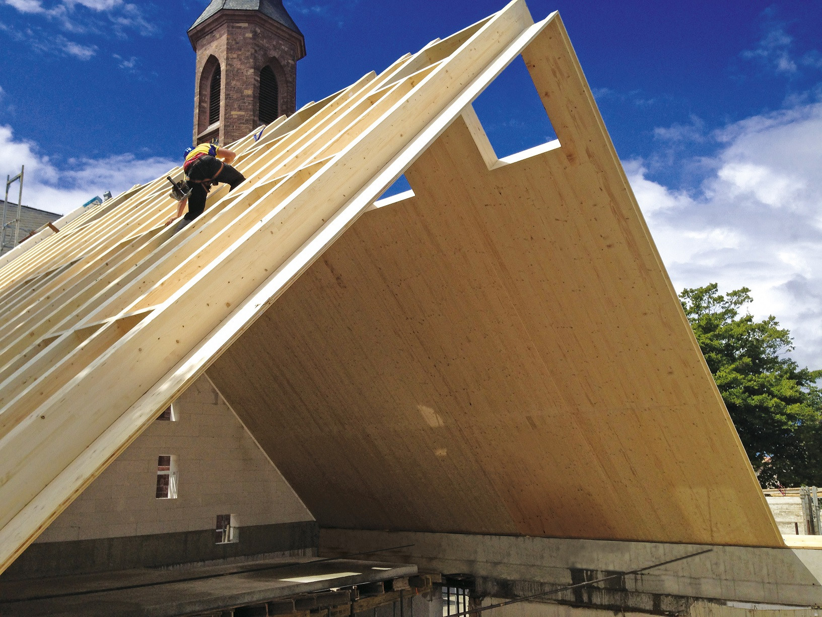 Za projektem rekonstrukce stojí architekti Frieder Sattler a Peter Fitterer, kteří se svým ateliérem Bautieger sídlí hned ve vedlejším městě. Stejně jako společnost Eberlein + Rappsilber, která projekt realizovala, se zaměřují na dřevostavby. Možná právě proto se nejdominantnějším prvkem stavby stala dřevěná konstrukce střechy, tvořena speciálními panely NOVATOP OPEN. „Projektanti je po konzultaci s námi zvolili z důvodu vysoké statické únosnosti, a především velkých rozponů, které jim umožnily velkoryse dimenzovat světlou výšku v interiéru,“ vysvětluje Josef Mynář, projektový specialista NOVATOP a doplňuje: „Velkou roli při volbě tohoto konstrukčního řešení sehrála také rychlost montáže se sníženými náklady na zabezpečení stavby (zábor ulice, lešení, bezpečnostní sítě atd.).“