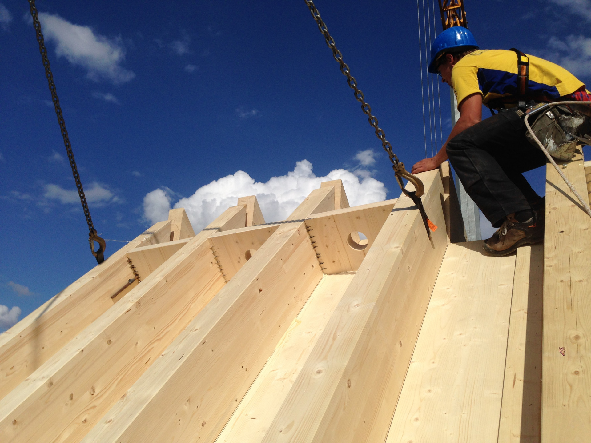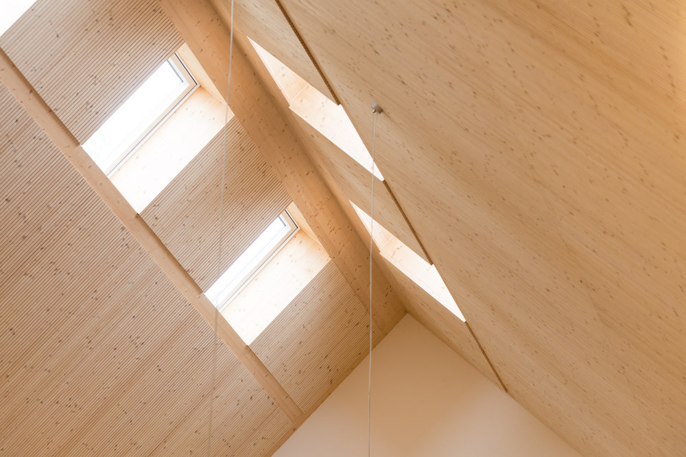 Střešní panely OPEN se pro rozšíření starší stavby staly výhodnými hned z několika důvodů. „Tyto speciální panely v sobě spojují výhody dobře známého dimenzování BSH hranolů a třívrstvé masivní desky a umožňují individuální stupeň prefabrikace s přesnými detaily. Dají se lehce kombinovat snad se všemi stavebními systémy nejen na bázi dřeva. Poradí si s ocelovými, zděnými prvky, jako v tomto případě, ale i velmi složitými kombinovanými konstrukcemi u novostaveb a rekonstrukcí. Tady jejich limity nekončí. Vyřeší celou řadu opravdu individuálních požadavků – speciální spoje, skladby, tvary, otvory pro okna i kruhové světlíky a podobně. Bonusem je spojení konstrukčního prvku a finálního povrchu, protože každý panel NOVATOP může být ponechán v interiéru přiznaný v pohledové kvalitě smrkového dřeva, “ vysvětluje Josef Mynář.